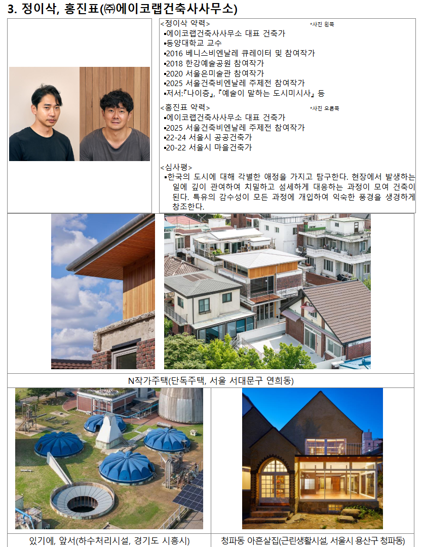 시상식은 오는 10월 21일 '2025 대한민국 건축문화제(서울 노들섬)'에서 진행하고, 12월에는 수상자들의 작품 전시회도 열릴 예정이다.
