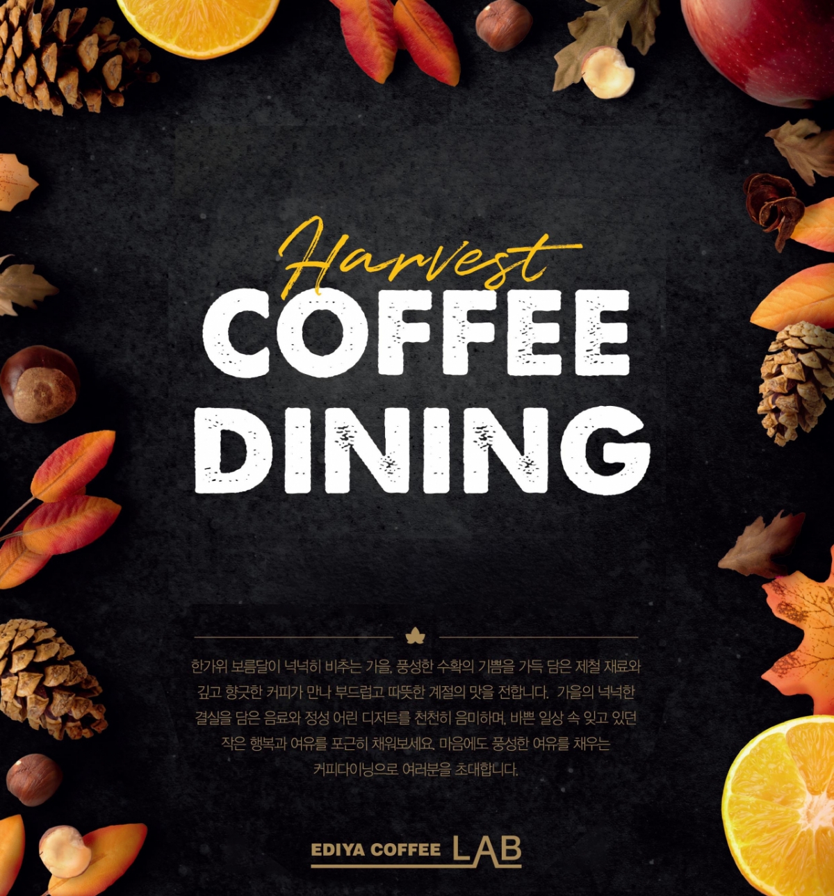 이디야커피 관계자는 "가을의 풍성함을 테마로 구성한 커피다이닝을 통해, 고객들이 커피와 함께 계절의 변화를 편안하게 즐길 수 있길 바란다"라며 "짧은 기간 동안 운영되는 만큼 많은 관심과 참여 부탁드린다"고 말했다.