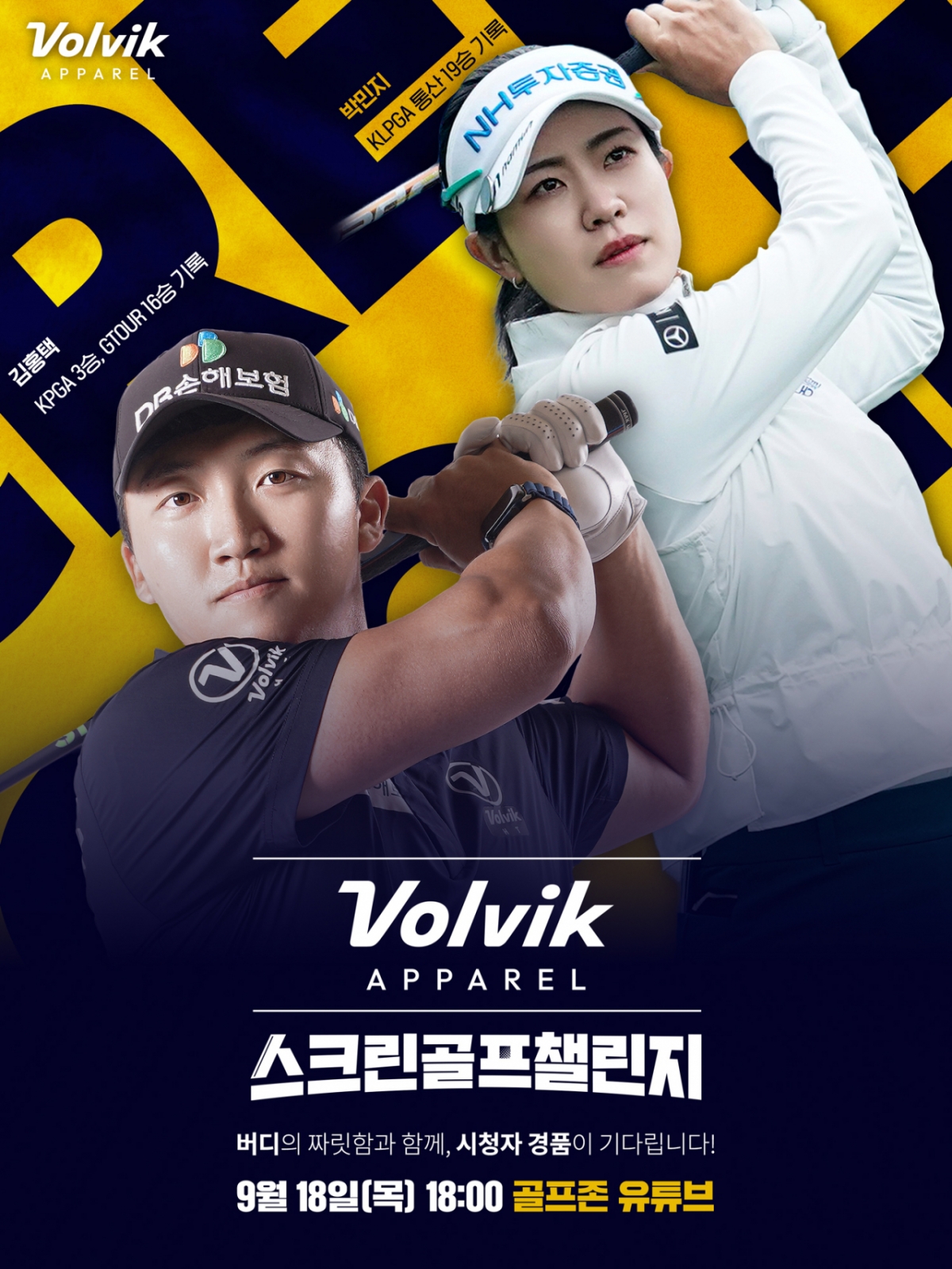 ㈜골프존(각자대표이사 박강수·최덕형)이 오는 9월 18일(목) 오후 6시 KPGA, KLPGA 투어에서 활발히 활동 중인 인기 프로 김홍택, 박민지 프로가 참가하는 '볼빅어패럴 스크린골프 챌린지'를 방송한다고 16일 밝혔다.