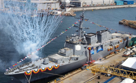 한·미 조선협력의 상징인 새 이지스구축함이 진수됐다.