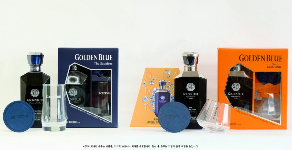 이번에 선보이는 선물 세트는 '골든블루 사피루스 패키지'와 '골든블루 다이아몬드 패키지' 2종으로 기획됐다. '골든블루 사피루스 패키지'는 450ml 용량의 '골든블루 사피루스' 1병과 하이볼잔 1개, 브랜드 로고가 새겨진 전용 코스터가 포함돼 있다. '골든블루 다이아몬드 패키지'의 경우 450ml '골든블루 다이아몬드' 1병과 스월링 글라스 1개, 코스터 1개로 구성돼 있다. 특히 각각의 제품은 위스키 음용 트렌드와 브랜드 아이덴티티를 반영한 실용적인 구성으로 감사의 마음을 전하는 명절 선물로 손색이 없다.