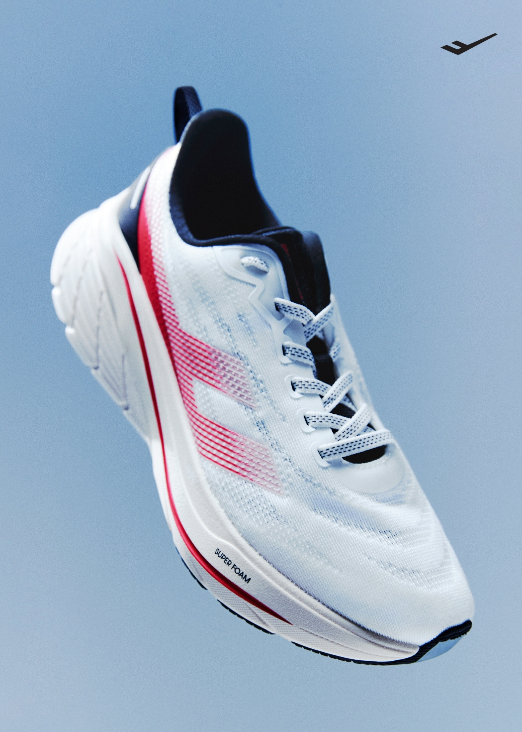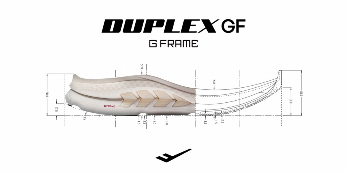 대표 제품인 듀플렉스GF는 지면 지지 구간에서 발생하는 흔들림을 통제하여, 움직임에 안정감을 주도록 설계된 '지프레임(G-FRAM)' 구조와 슈퍼폼과 슈퍼라이트 소재를 결합한 이중 물성 미드솔(중창)을 적용해 흔들림 없는 안정적 주행을 돕는 러닝화다. 부드러운 쿠셔닝과 견고한 지지력을 동시에 갖춰, 장시간 러닝은 물론 일상생활에서도 발의 피로도를 효과적으로 낮춰 부담 없이 신을 수 있는 것이 특징이다.