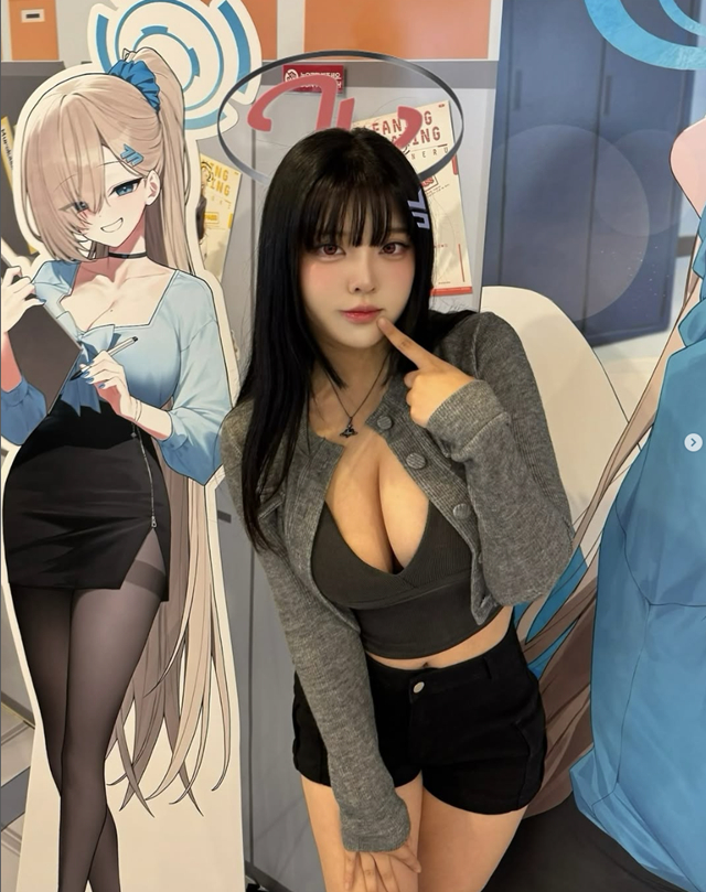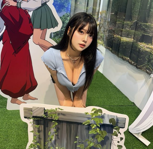 또 일본 인기 애니메이션 '이누야샤' 패널 옆에서 포즈를 취하기도 했다.