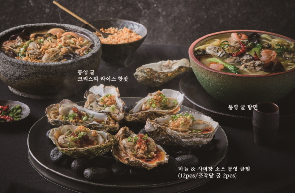 추운 날씨에 어울리면서도 굴의 진한 풍미를 느낄 수 있는 '통영 굴 핫팟' 2종과 마늘과 샤미장 소스를 곁들인 '통영 굴찜'이 신메뉴다. '크리스피 라이스 통영 굴 핫팟'은 통영 앞바다의 신선한 향이 우러난 국물에, 생굴과 안남미를 튀겨낸 바삭한 누룽지를 올린 식사 메뉴다. '마늘&샤미장 소스 통영 굴 찜'은 부드럽게 쪄낸 통영 생굴을, 고소한 마늘소스와 매콤한 수제 샤미장 소스를 곁들인 요리이며, 와인이나 고량주와 페어링하기 좋다.