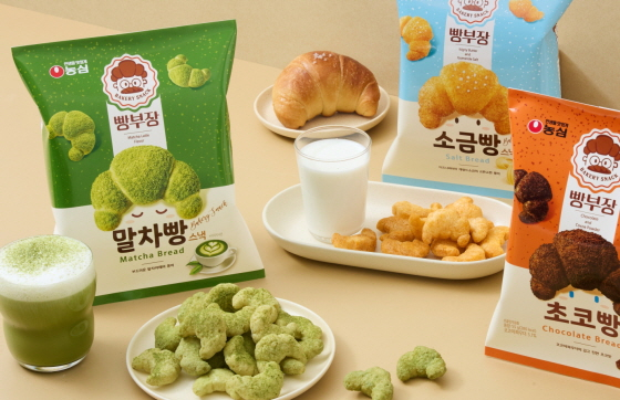 농심이 베이커리 스낵 '빵부장' 시리즈의 신제품 '빵부장 말차빵'을 오는 15일 출시한다. 기존 빵부장 소금빵, 초코빵 등 히트작에 이어 새롭게 선보이는 제품이다.