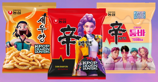 농심은 지난 8월, 식품업계 최초로 넷플릭스와 협업을 통해 신라면·새우깡 등의 패키지에 애니메이션 영화 '케이팝 데몬 헌터스' 캐릭터 디자인을 적용했다. 특히, 헌트릭스, 사자보이즈, 더피 등 영화 속 캐릭터를 신라면과 새우깡, 신라면 툼바 만능소스의 제품 특징과 연결한 디자인 기획으로, 출시 직후 글로벌 소비자들의 이목을 집중시켰다.