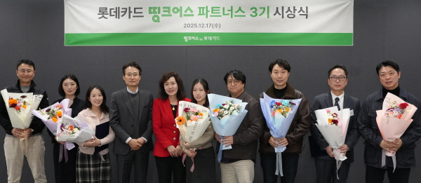 롯데카드는 17일 서울 종로구 본사에서 띵크어스 파트너스 3기 참여 기업을 발표하는 시상식을 열고 8개 기업에 총 1억 1천만원의 사업 지원 자금을 수여했다.