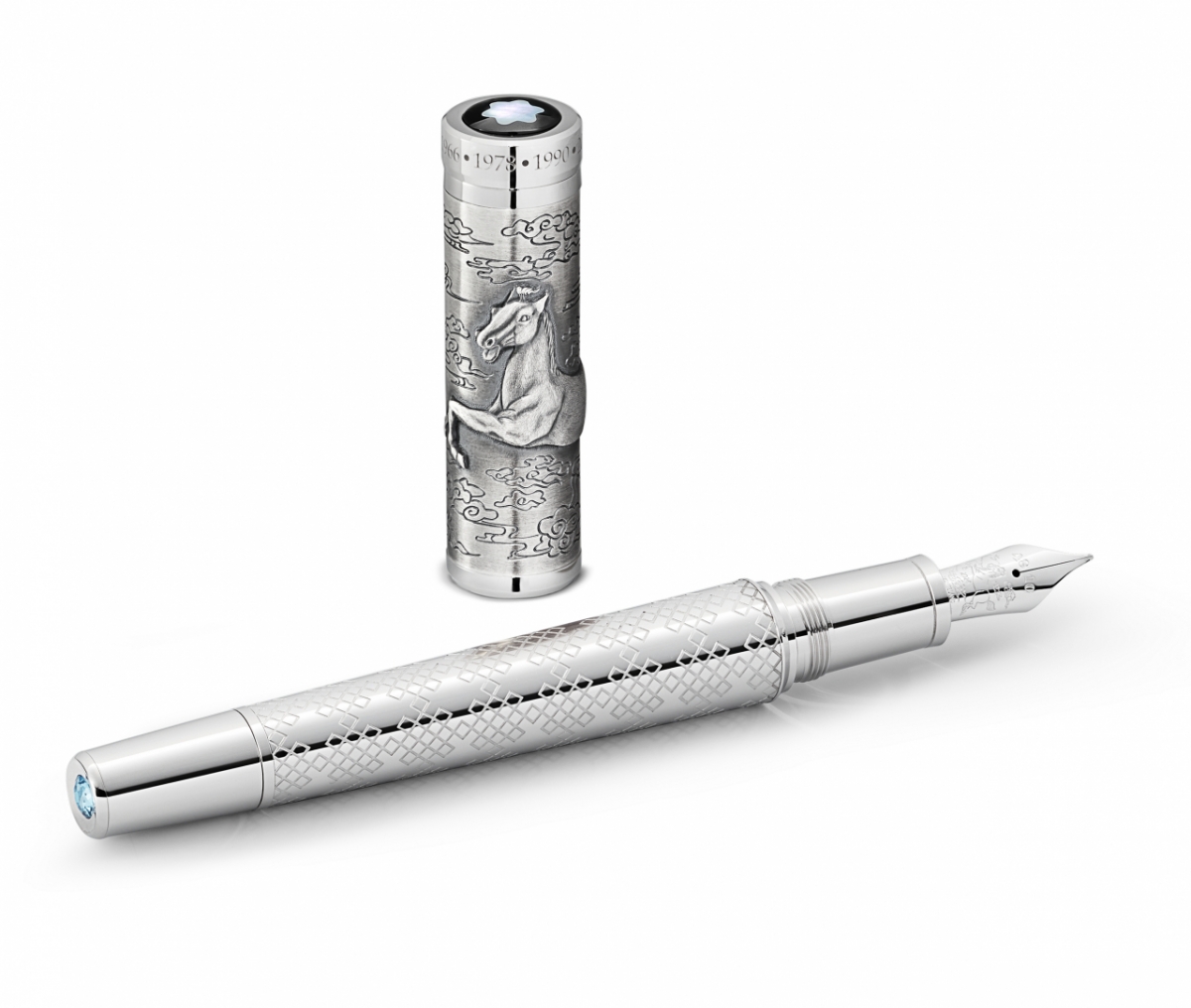 솔리드 Au 750 골드 닙에는 더 높은 차원으로의 여정을 상징하는 천마 모티프가 장식돼 있으며, 캡탑에는 마더 오브 펄 소재의 몽블랑 엠블럼이 세팅되어 있다.