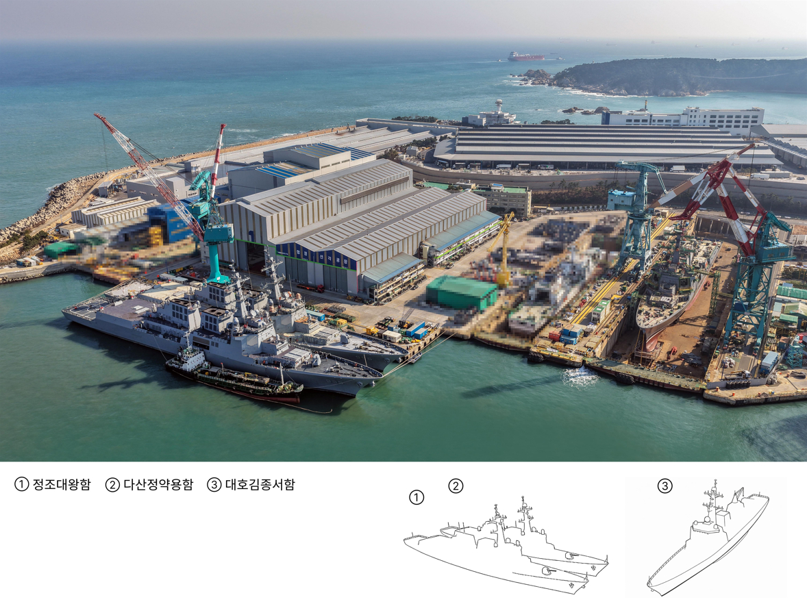 19일 HD현대중공업이 건조했거나 건조 중인 정조대왕급 이지스함인 '정조대왕함', '다산정약용함', '대호김종서함'이 HD현대중공업 울산 조선소에 집결했다. HD현대중공업은 이날을 '이지스 구축함의 날'로 지정하고 3척 이지스함의 함장들을 초대해 감사의 뜻을 전했다.