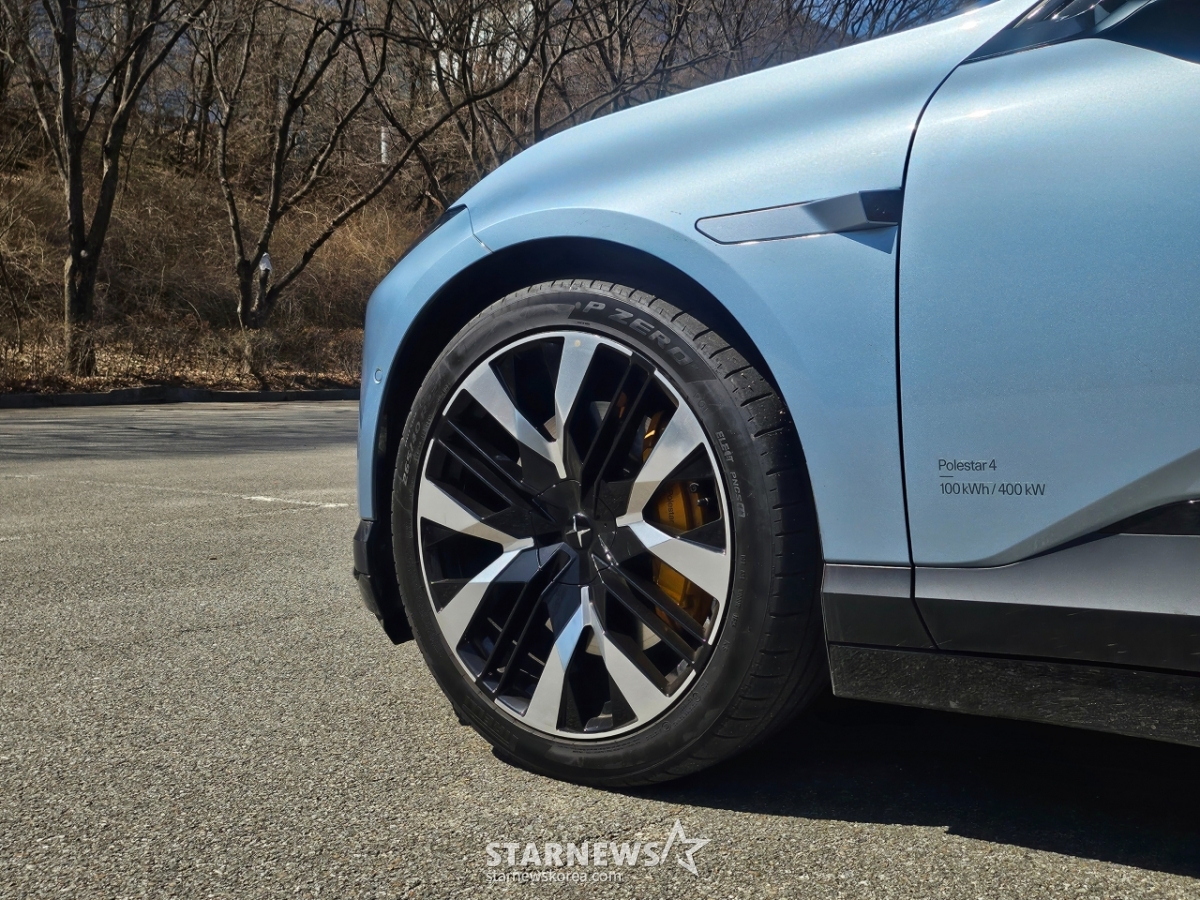 폴스타 4는 치밀하다. 쿠페형 크로스오버임에도 2열 머리 공간을 손해보지 않았고 운전석에서 좌우 폭을 가늠하기 좋은 펜더 라인을 넣었다. 큼지막한 22인치 휠은 거대한 휠 하우스를 꽉 채우고 있다. 타이어는 피렐리제다. 레이더 센서와 카메라는 존재감을 드러내지 않으면서도 전체 캐릭터 라인에 잘 녹아들어 있다. 뒷 유리를 없앴지만 글래스 루프를 길게 뒤로 끌어내려 답답하지 않게 배치한 점도 디자이너의 한수다.