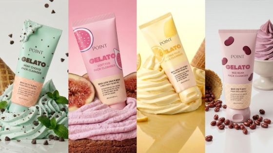 포인트 젤라또 팩 클렌저는 '포인트 젤라또 민트초로 팩 클렌저', '포인트 젤라또 소프트 무화과 팩 클렌저', '포인트 젤라또 시트러스 유자 팩 클렌저', '포인트 젤라또 단팥 팩 클렌저'로 구성됐다.