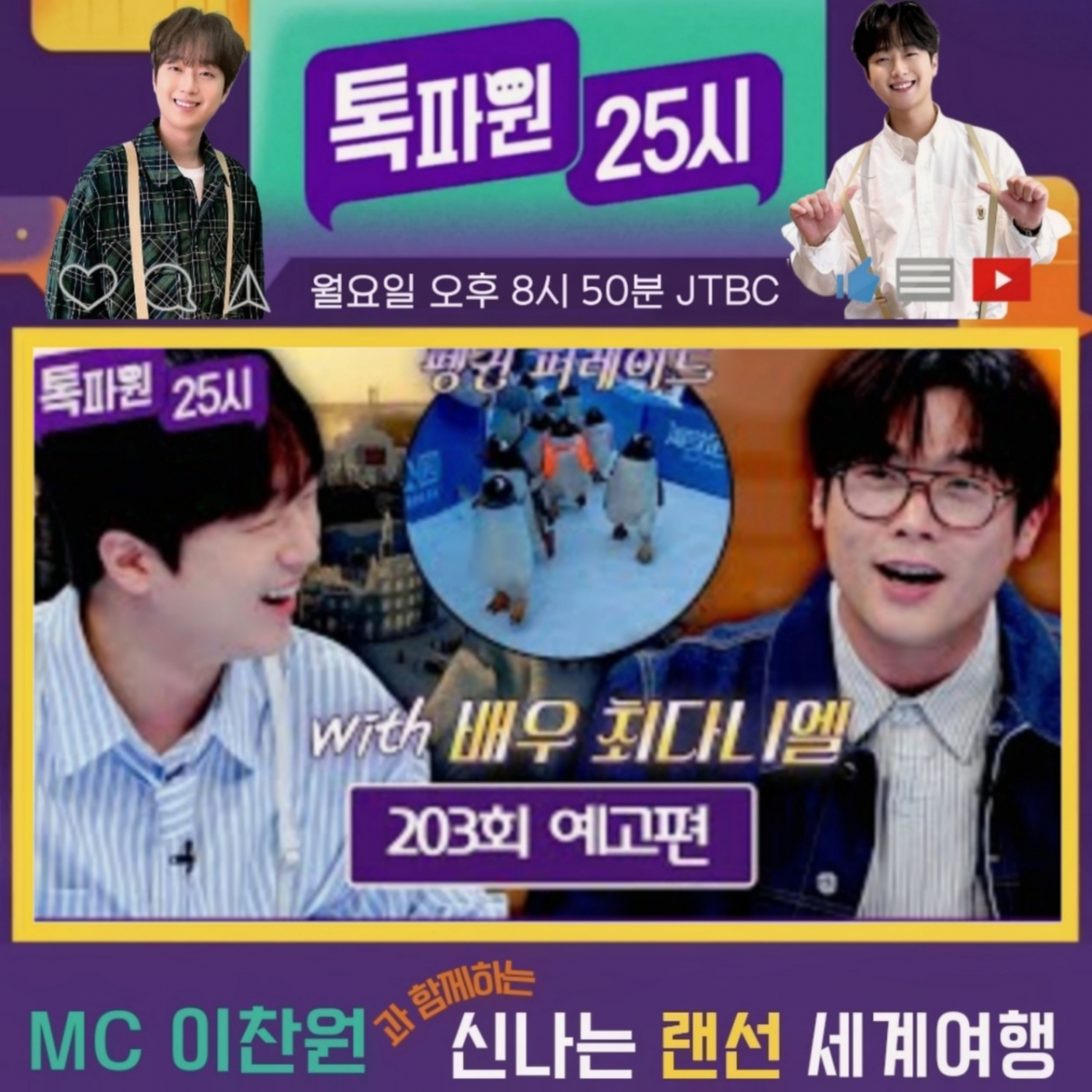 The second is Harbin, the city of ice. When the video of the Ice and Snow Festival, a festival of snow and ice, was released, a brilliant Frozen scene unfolded. Penguin Parade appeared and attracted the attention of the performers. When TalkPaper asked Choi Daniel to make an acrostic poem with "Harbin," he responded ridiculously, and Lee Chan-won, who saw it, created a pleasant atmosphere by saying, "With the power, with the power, with the power!"