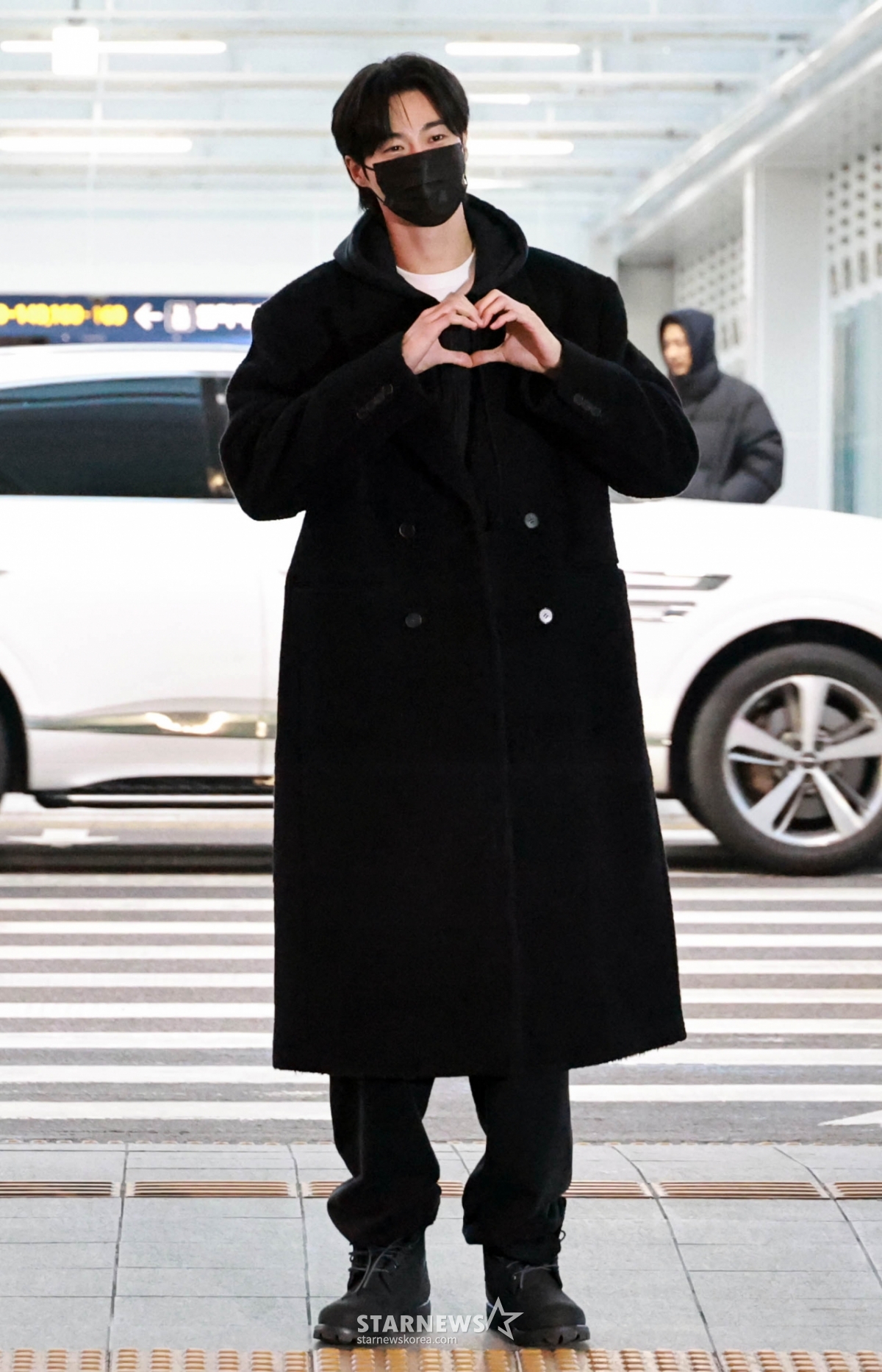 Actor Byun Woo-seok is leaving Incheon International Airport on the morning of the 10th to attend the Golden Disc Awards. 2026.01.10