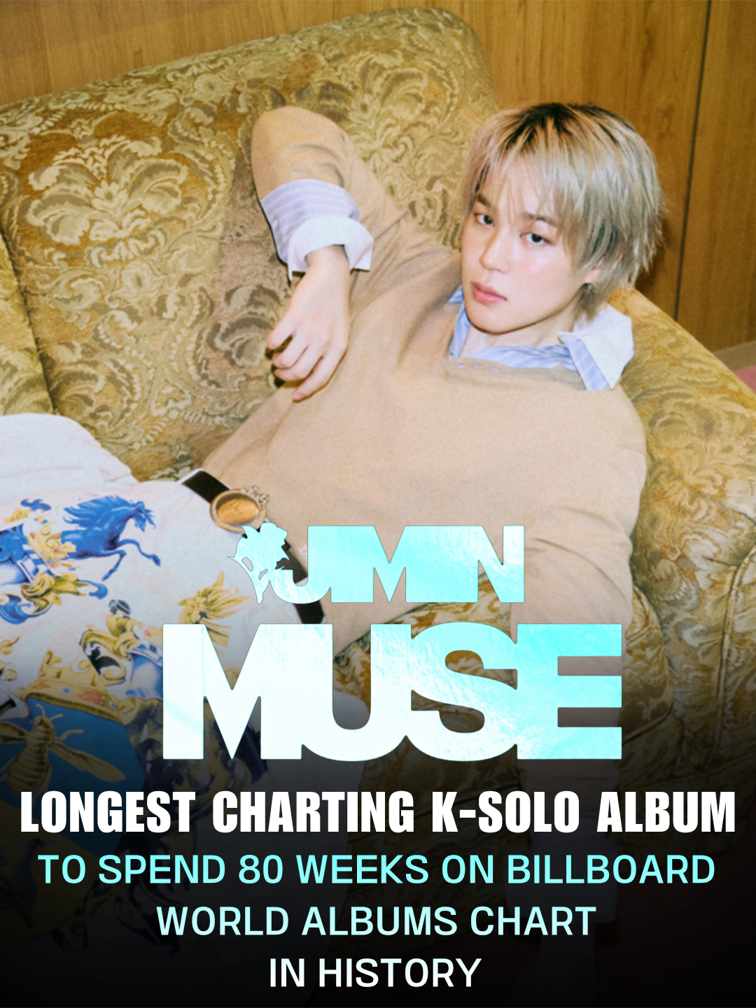 According to the U.S. music media Billboard, Jimin's second solo album "MUSE" ranked 13th on the Billboard "World Album" chart and succeeded in charting for 80 consecutive weeks. It is the first and only record of a K-pop solo album.