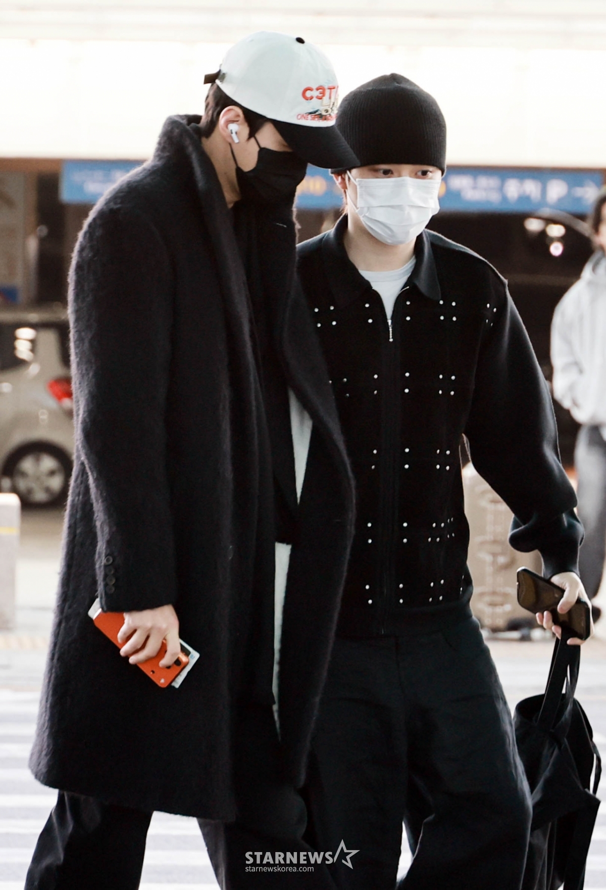 Group EXO Sehun and D.O. are leaving Incheon International Airport on the morning of the 6th for their schedule in Shanghai, China. 2026.02.06