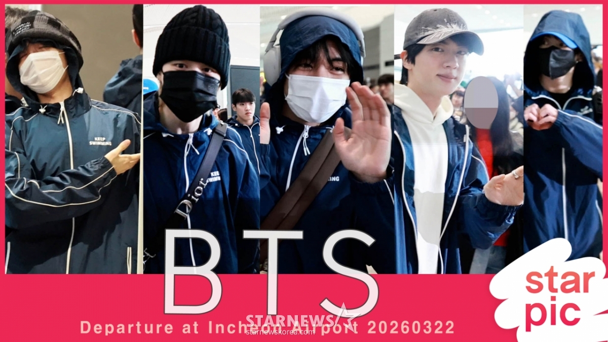 Group BTS (BTS) Jin, RM, Suga, J-Hope, Taehyung, Jimin, and Jungkook are leaving Incheon International Airport on the morning of the 22nd to promote their fifth studio album "ARIRANG." 2026.03.22