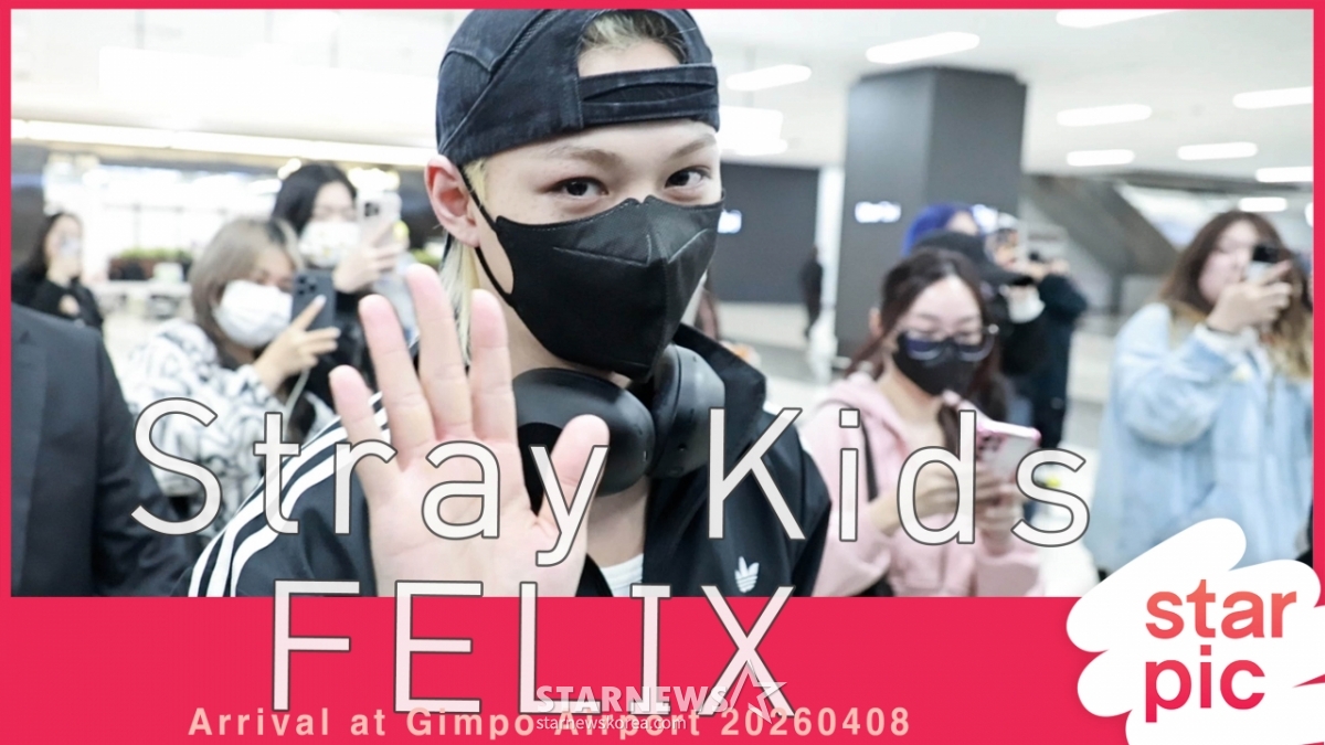 Felix of the group Stray Kids is arriving at Gimpo International Airport after finishing his schedule in Beijing on the afternoon of the 8th. 2026.04.08