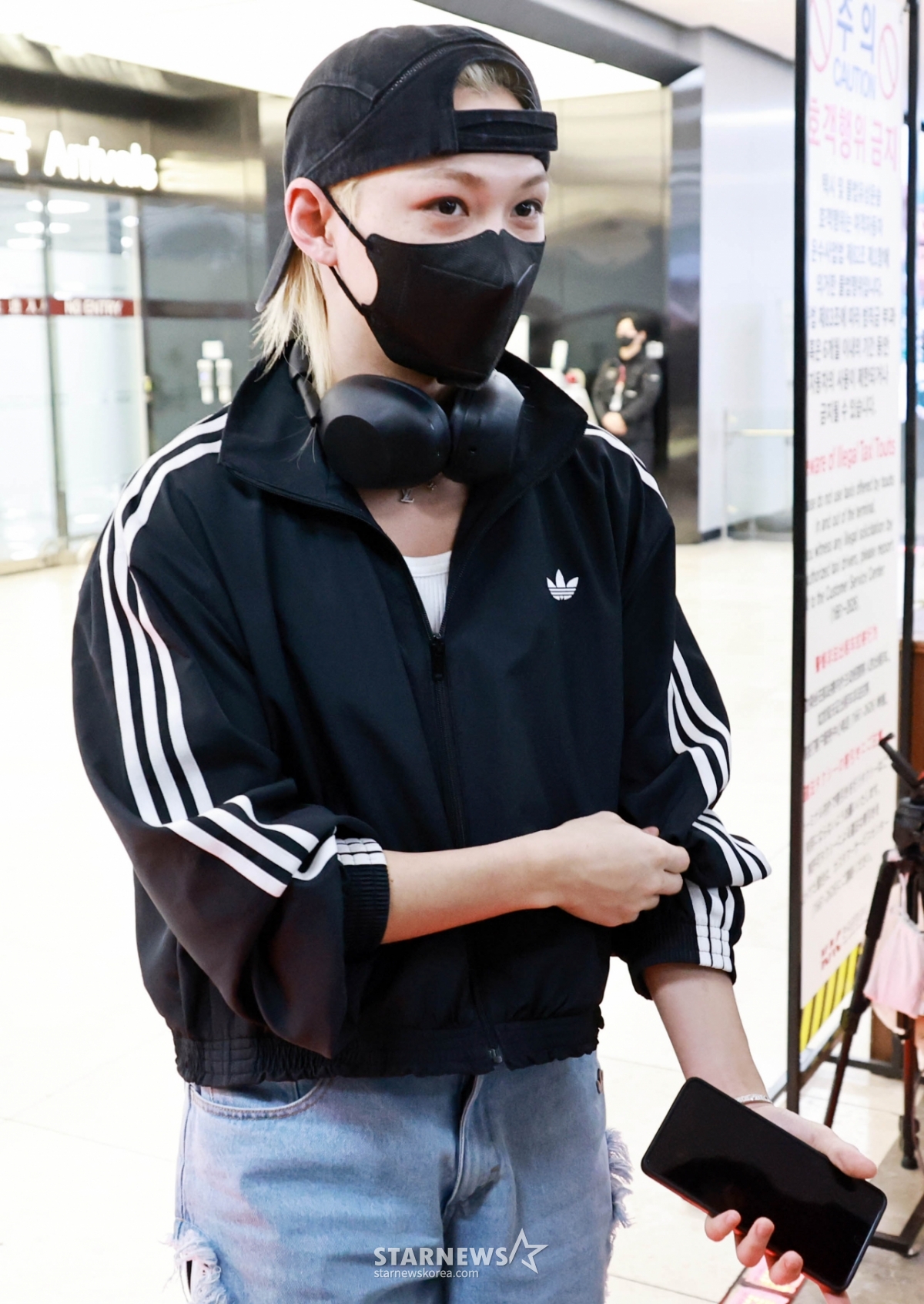 Felix of the group Stray Kids is arriving at Gimpo International Airport after finishing his schedule in Beijing on the afternoon of the 8th. 2026.04.08