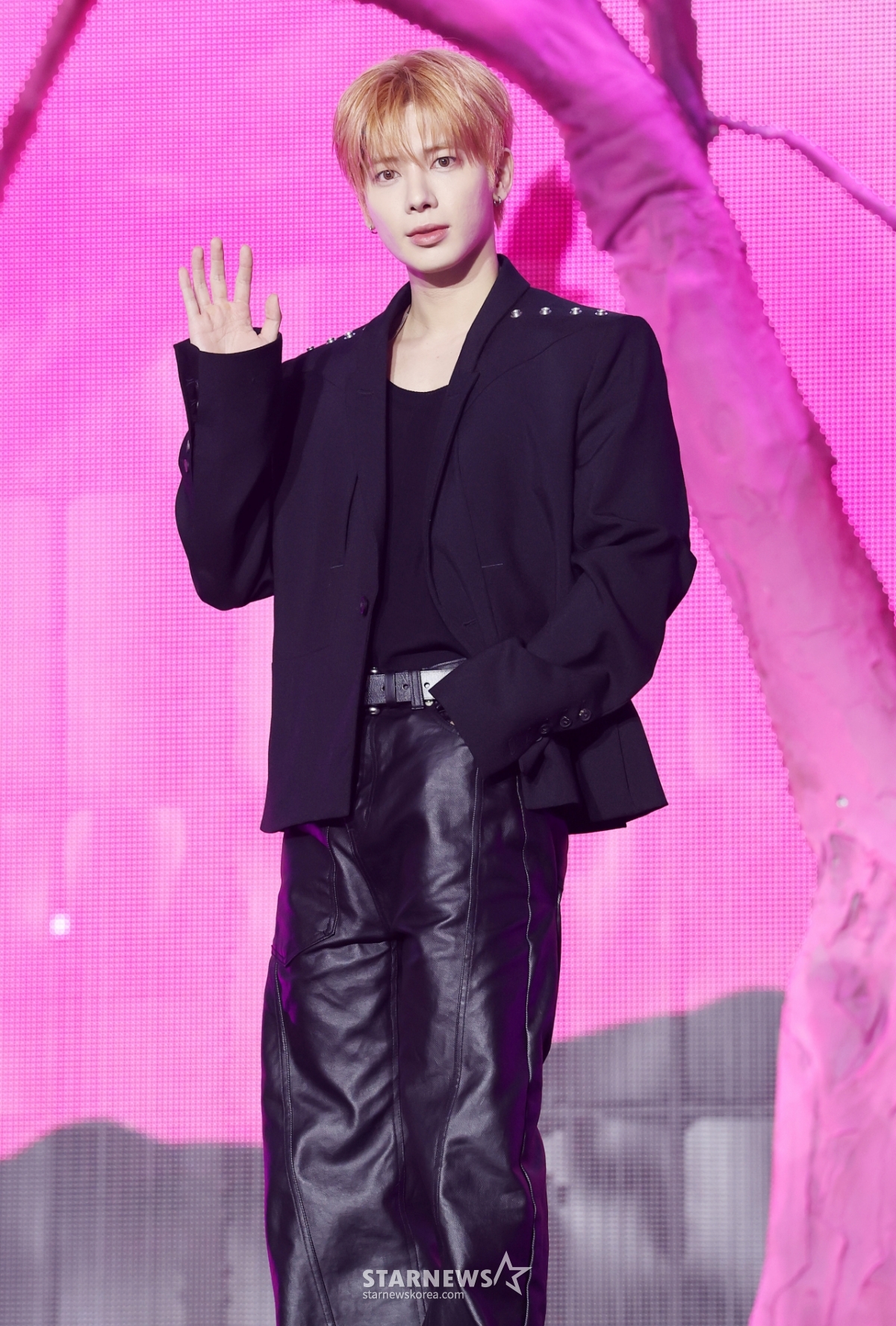 Group Tomorrow X Together's Taehyun poses at a showcase to commemorate the release of his mini 8th album "7TH YEAR: When the Wind Stops for a Time" at Korea University Hwajeong Gymnasium in Seongbuk-gu, Seoul on the 13th. /2026.04.13