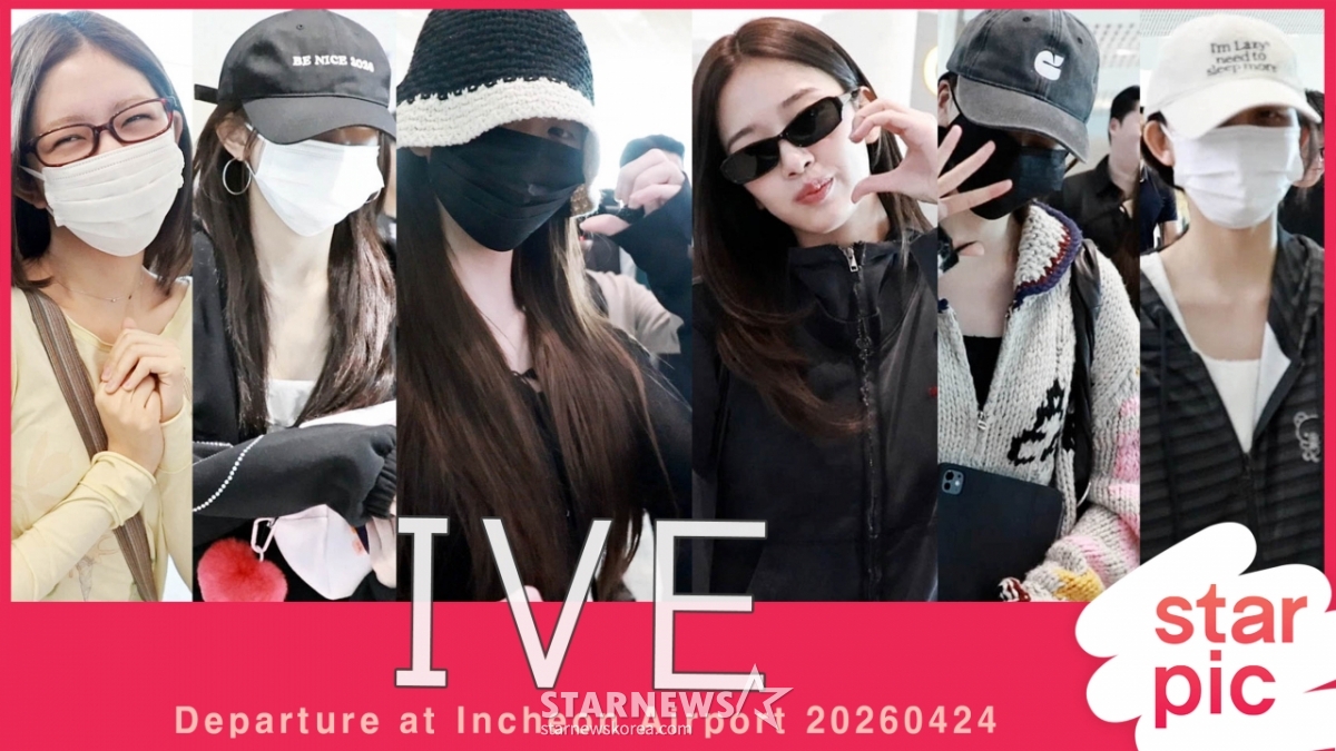 Group IVE members An Yu-jin, Jang Wonyoung, Liz, Gaeul, Lee Seo, and Leeseo are departing from Incheon International Airport on the afternoon of the 24th for their Manila performance. 2026.04.24
