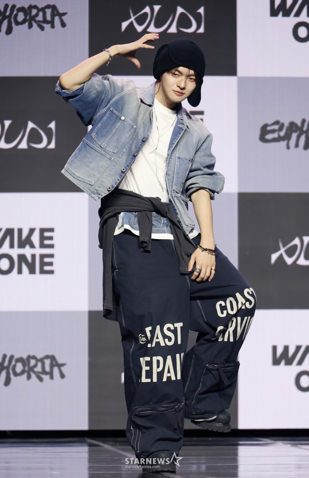 Group Alpha Drive One Rio poses at a showcase to commemorate the release of its first mini album "EUPHORIA" (Euphoria) at Blue Square in Yongsan-gu, Seoul on the afternoon of the 12th.