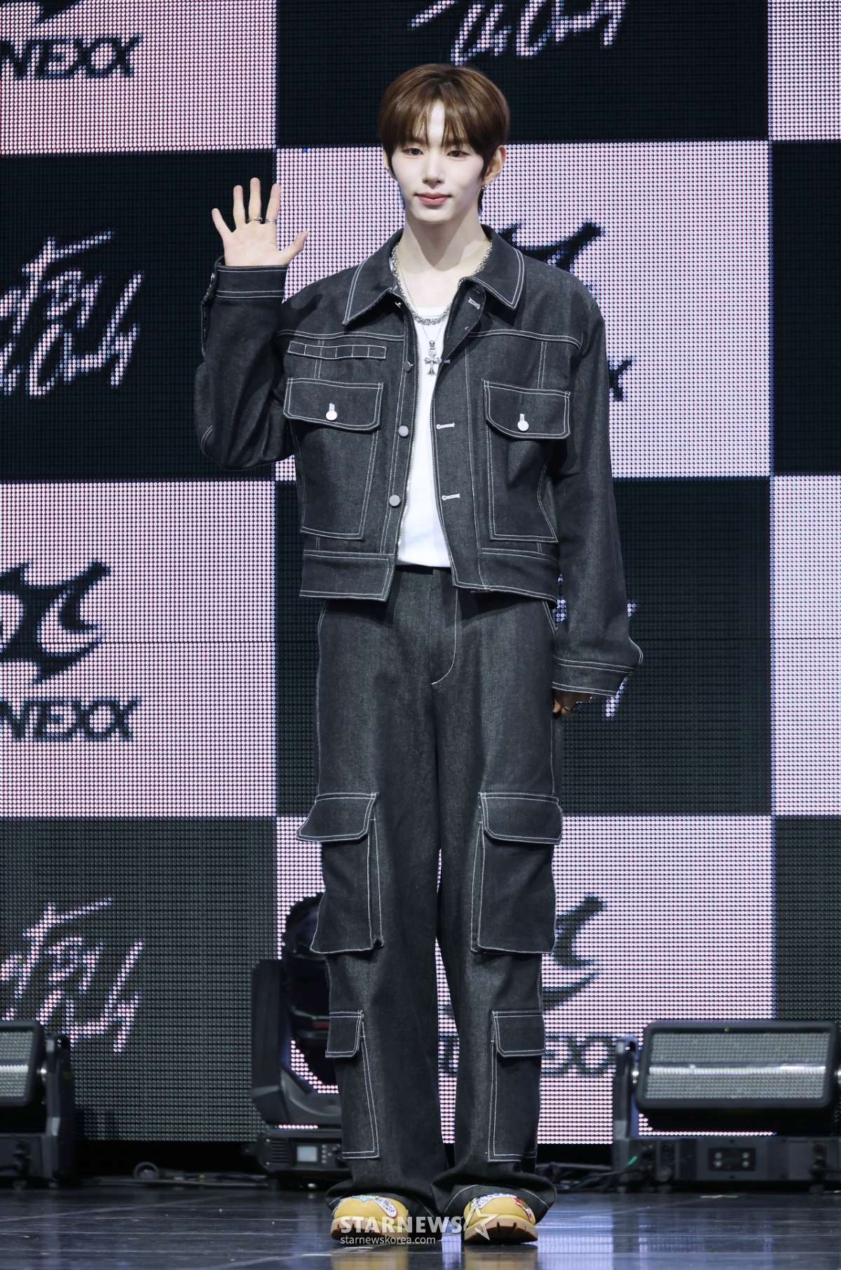 Sung Joon, a new boy group "TUNEXX," poses at a showcase to commemorate the release of his debut album and first mini album "SET BY US ONLY" at Yes24 Live Hall in Gwangjin-gu, Seoul on the afternoon of the 3rd.