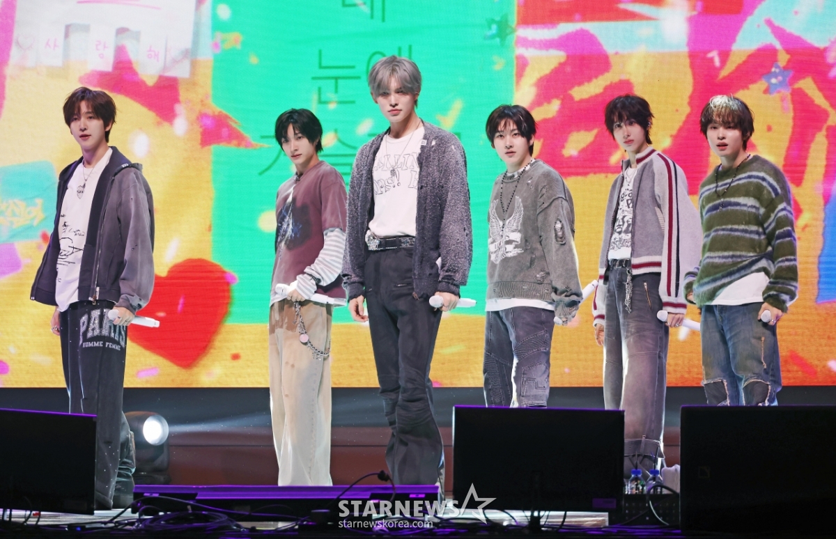 The group KickFlip is performing the title song at a showcase commemorating the release of its fourth mini-album "My First Kick" at Yes24 Live Hall in Gwangjin-gu, Seoul, on the afternoon of the 6th.