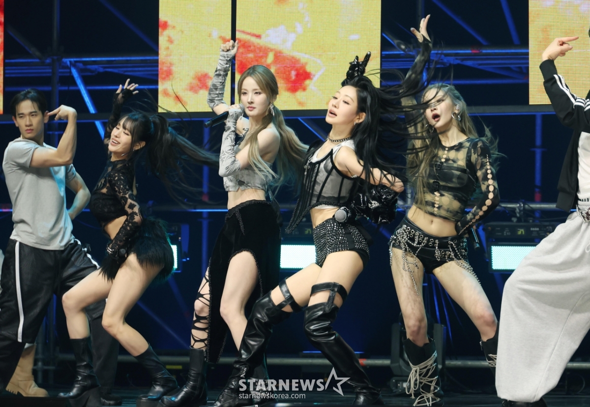 Girl group Kiss of Life is performing a new song at a showcase commemorating the release of its new single "Who Is She" at Blue Square in Yongsan-gu, Seoul, on the afternoon of the 6th.