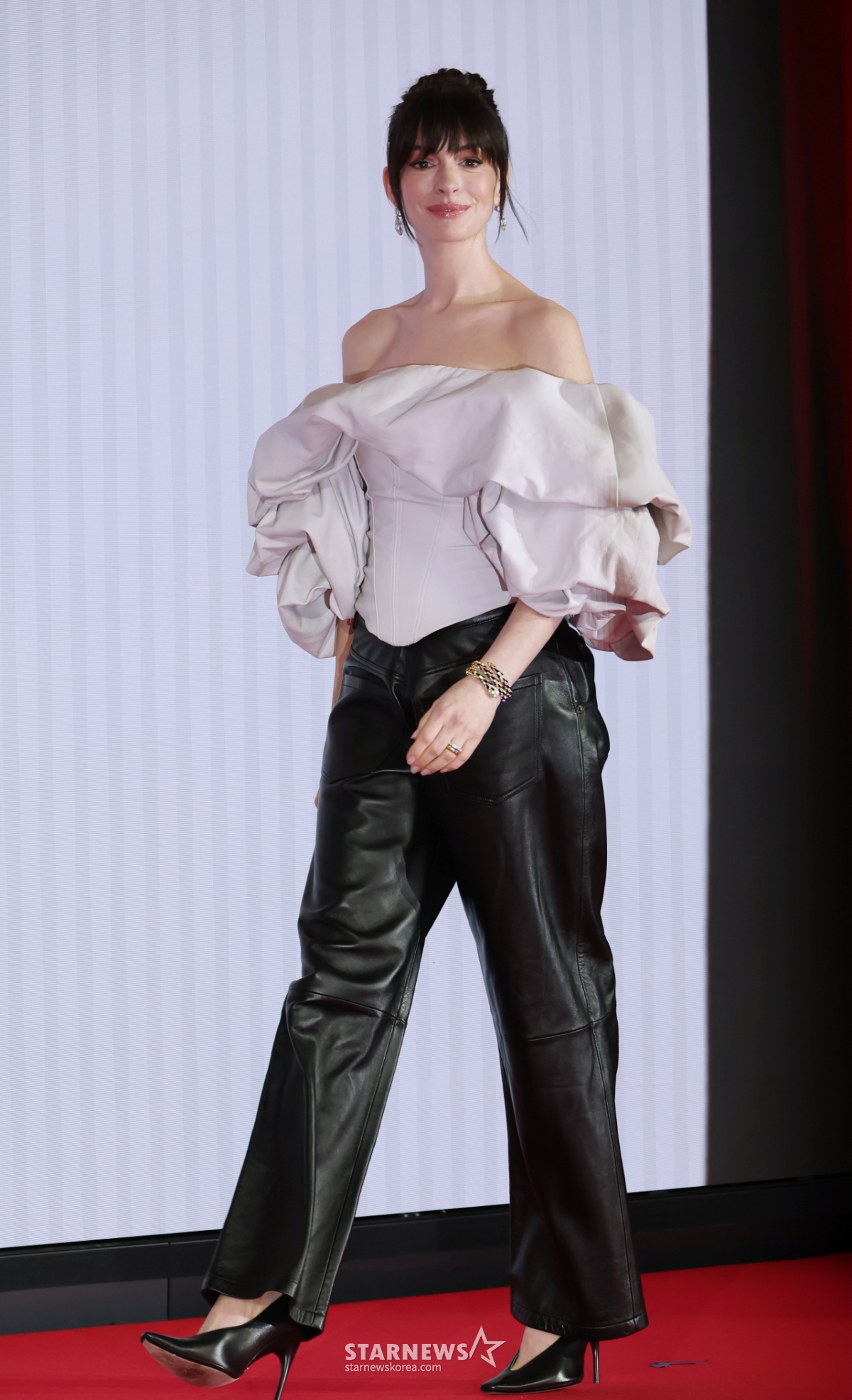 Actress Anne Hathaway will wear Prada, the movie 'The Devil Wears Prada' at the Four Seasons Hotel in Jongno-gu, Seoul on the morning of the 8th 2' Attending a press conference in Korea and posing.