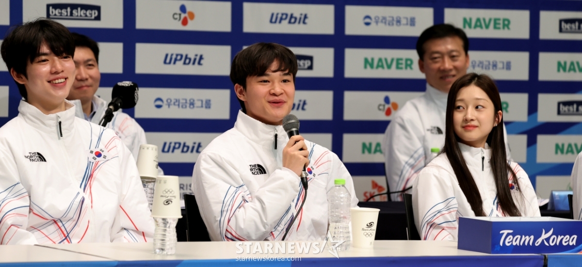 Figure skating Kim Hyun-kyum answers reporters' questions at the d-30 media day of the 2026 Milan-Cortina Winter Olympics held at Jincheon National Training Center on the 7th. I'm going to publish my second book of poetry after the Olympics... 2026.01.07.