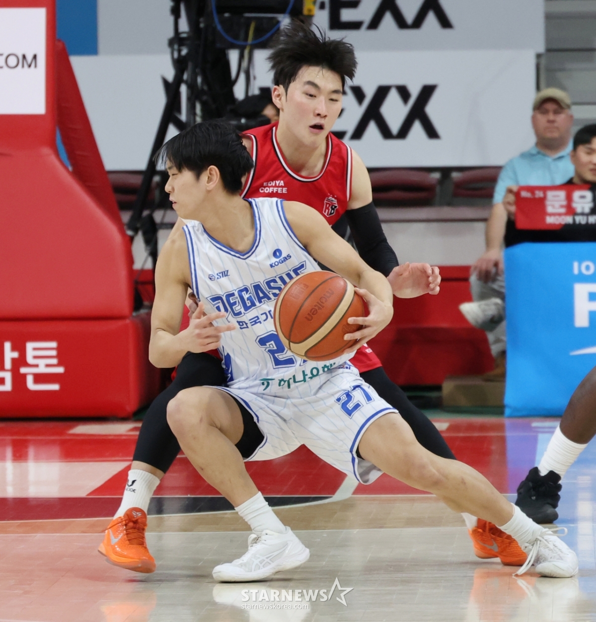 Korea Gas Corporation Yang Woo-hyuk is looking for an attack route with his back to Jeonggwanjang Moon Yoo-hyun..