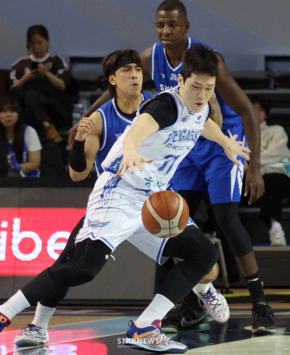 Korea Gas Corporation Kim Joon-il is looking for a place to pass with his back to Samsung Gutang.