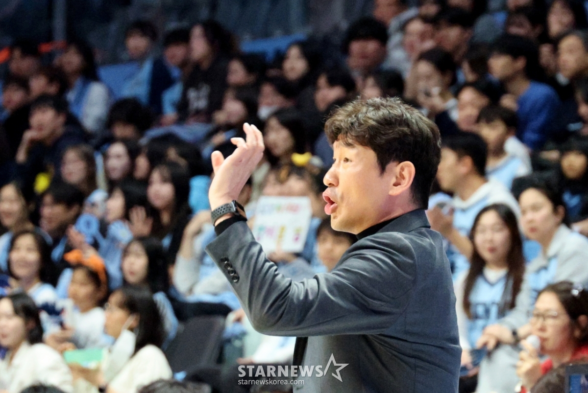 Ulsan Mobis coach Yang Dong-geun is encouraging players in the 2025-2026 LG Electronics professional basketball match between Goyang Sono and Ulsan Mobis at Goyang Sono Arena on the 27th. 2026.01.27