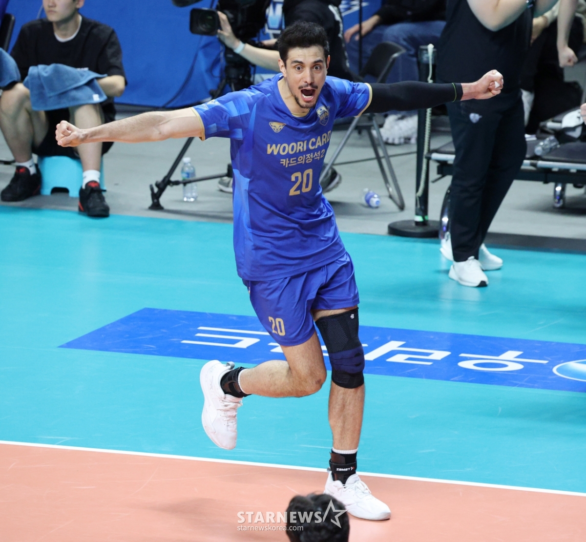 Woori Card Araujo is cheering after scoring a decisive goal.