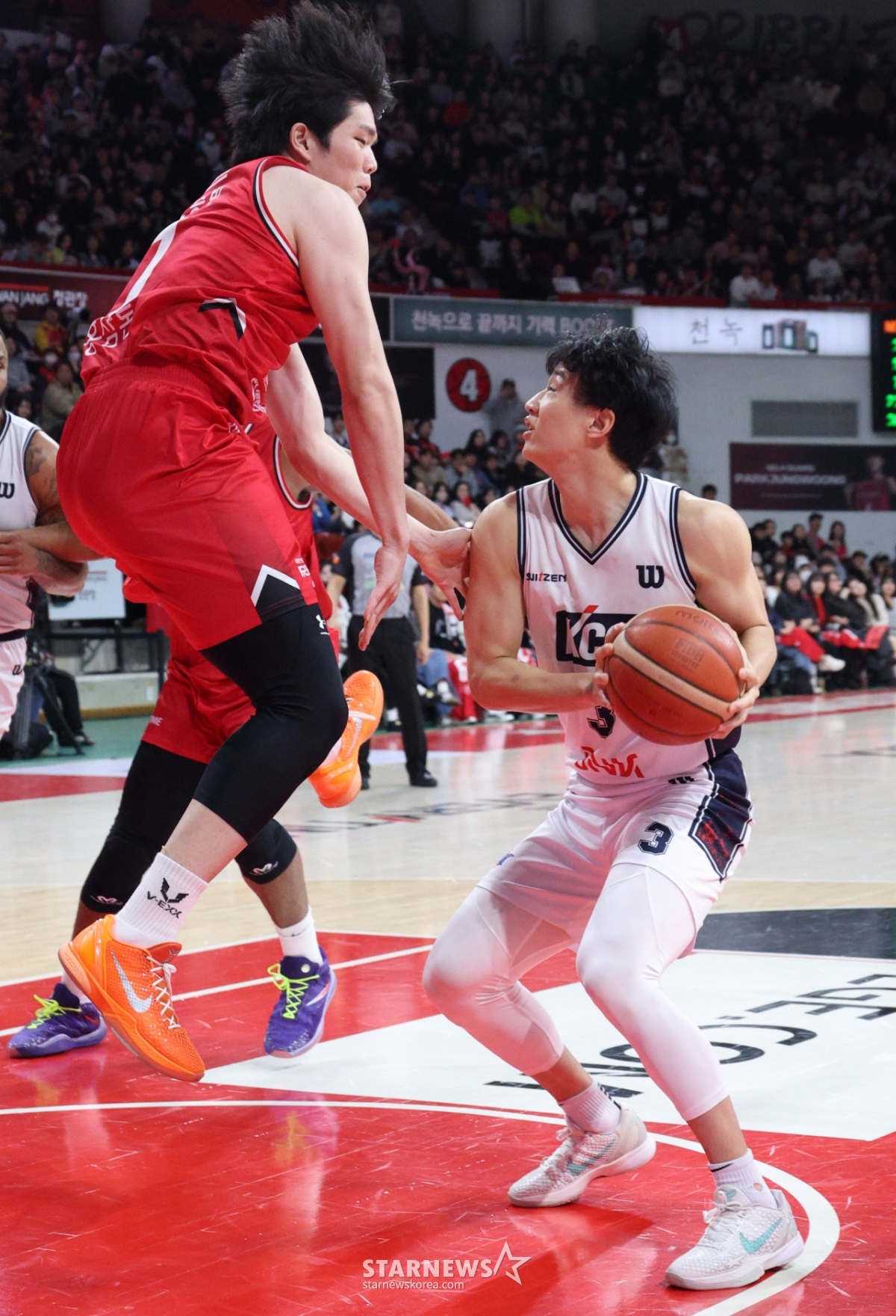 The 2025-2026 LG Electronics professional basketball match between Anyang Jeonggwanjang and Busan KCC was held at Jeonggwanjang Arena in Anyang, Gyeonggi-do on the 7th.