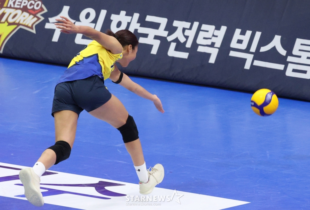 Hyundai Engineering & Construction's Jastis is flying toward the ball.