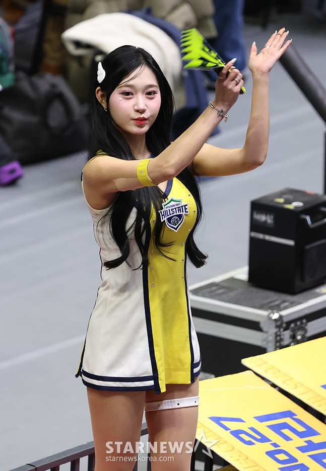 Hyundai Engineering & Construction's Jeong Ga-ye is cheering enthusiastically.