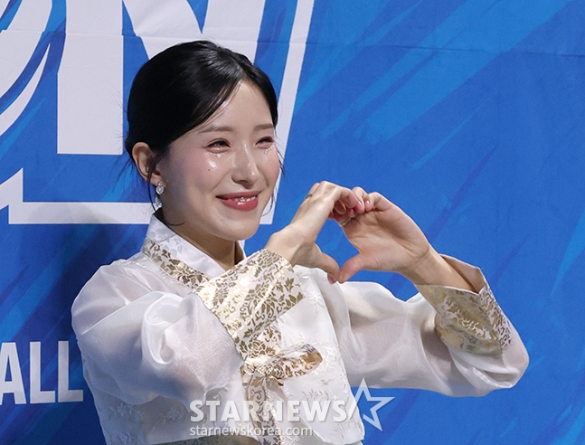 Woori Card's cheerleader Kim Yu-na is cheering for the Lunar New Year's special in Hanbok.
