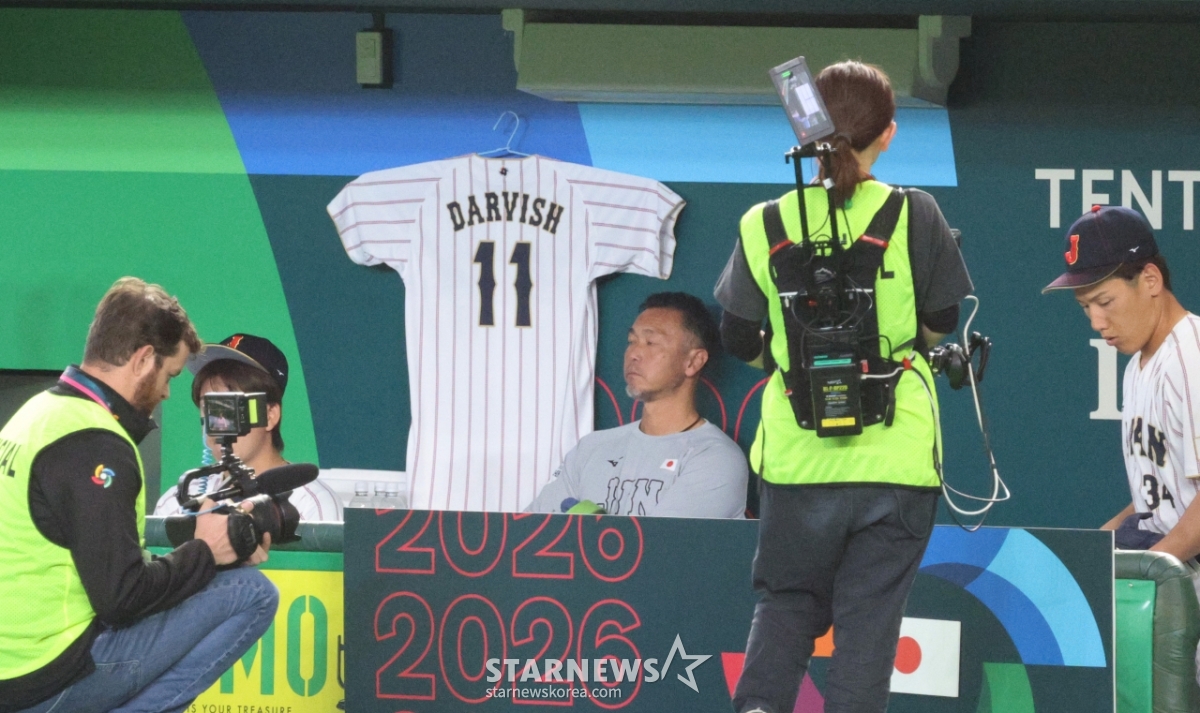 Darvish's uniform is hanging in the Tokyo Dome Japan dugout where the 2026 WBC Tokyo POOL match between South Korea and Japan was held on the 7th. 2026.03.05.
