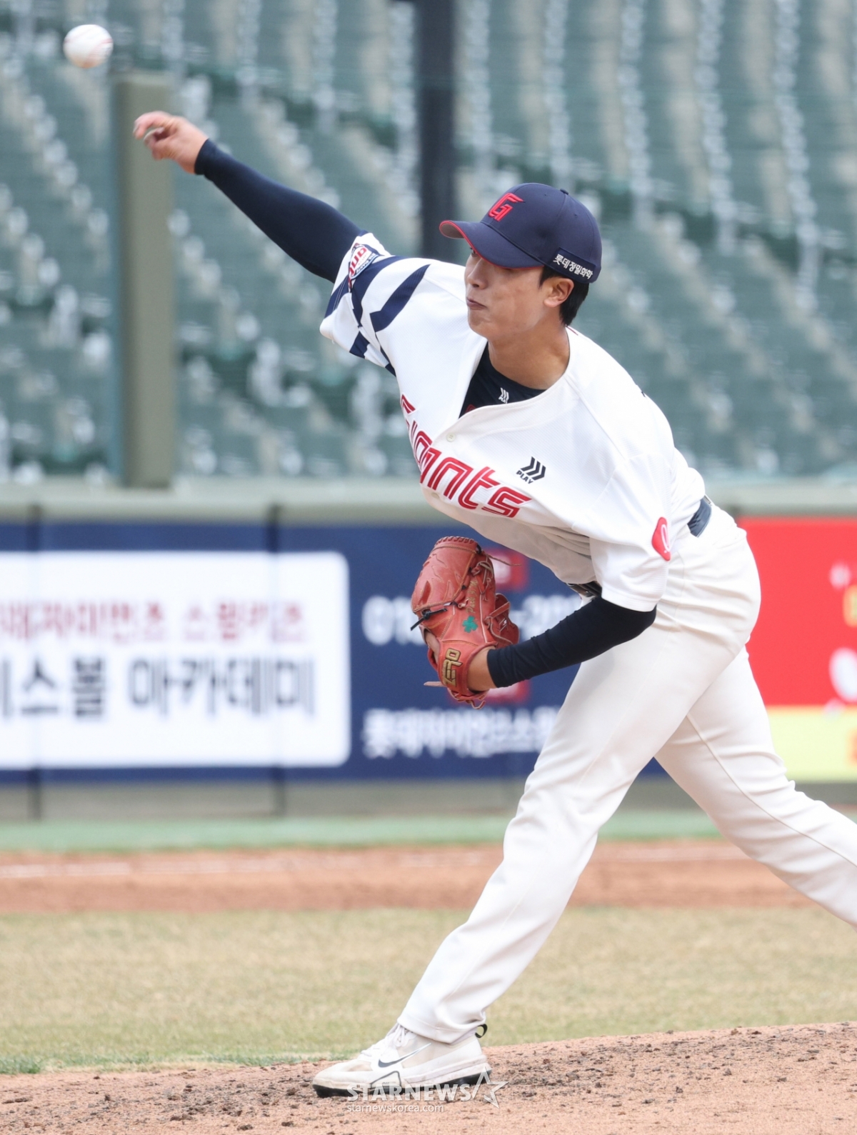 Lotte's Park Jung-min is pitching hard.