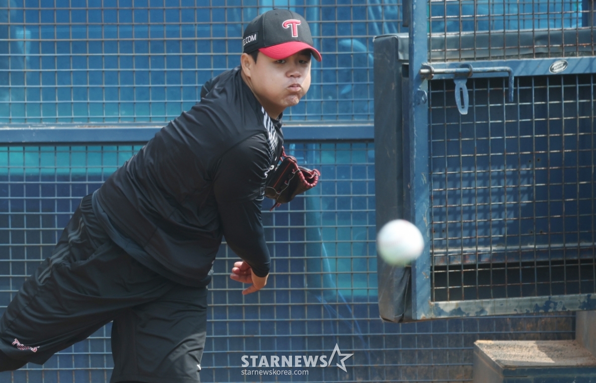 LG Jang Hyun-sik is pitching a bullpen.