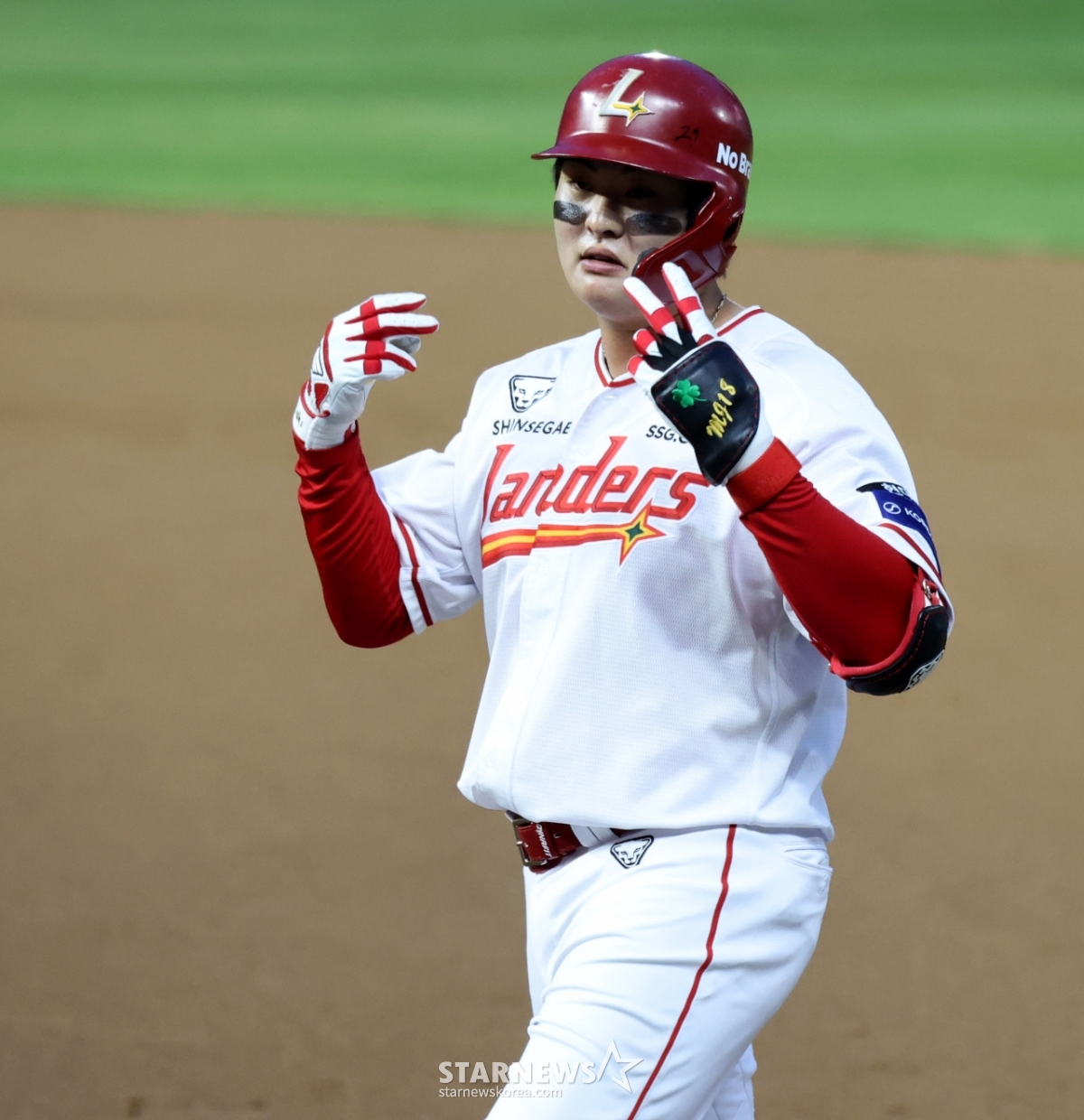 Landers' No. 5 hitter Ko Myung-joon is on base with a hit in the bottom of the second inning of the 2026 professional baseball game between SSG Landers and Kiwoom Heroes at SSG Landers Field in Incheon on the 31st. 2026.03.31.