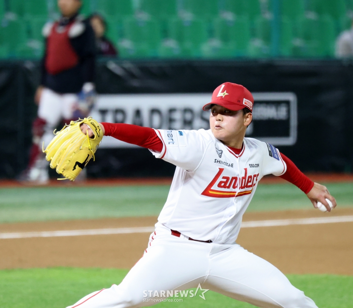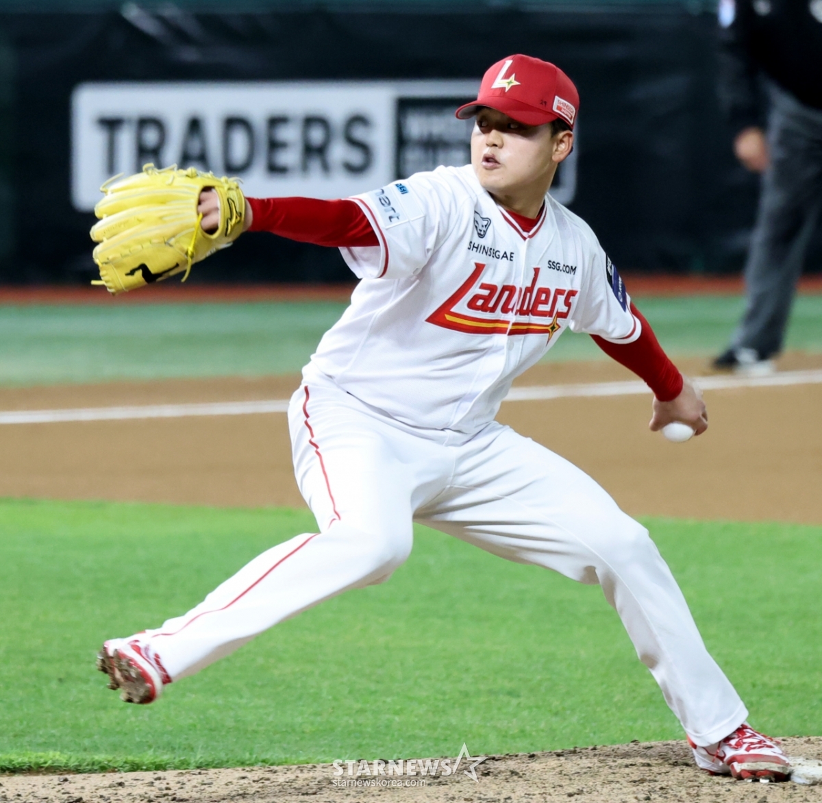 Landers left-hander Lee Ki-soon is pitching a scoreless pitch in the top of the eighth inning of the 2026 professional baseball game between SSG Landers and Kiwoom Heroes at SSG Landers Field in Incheon on the 31st. 2026.03.31.