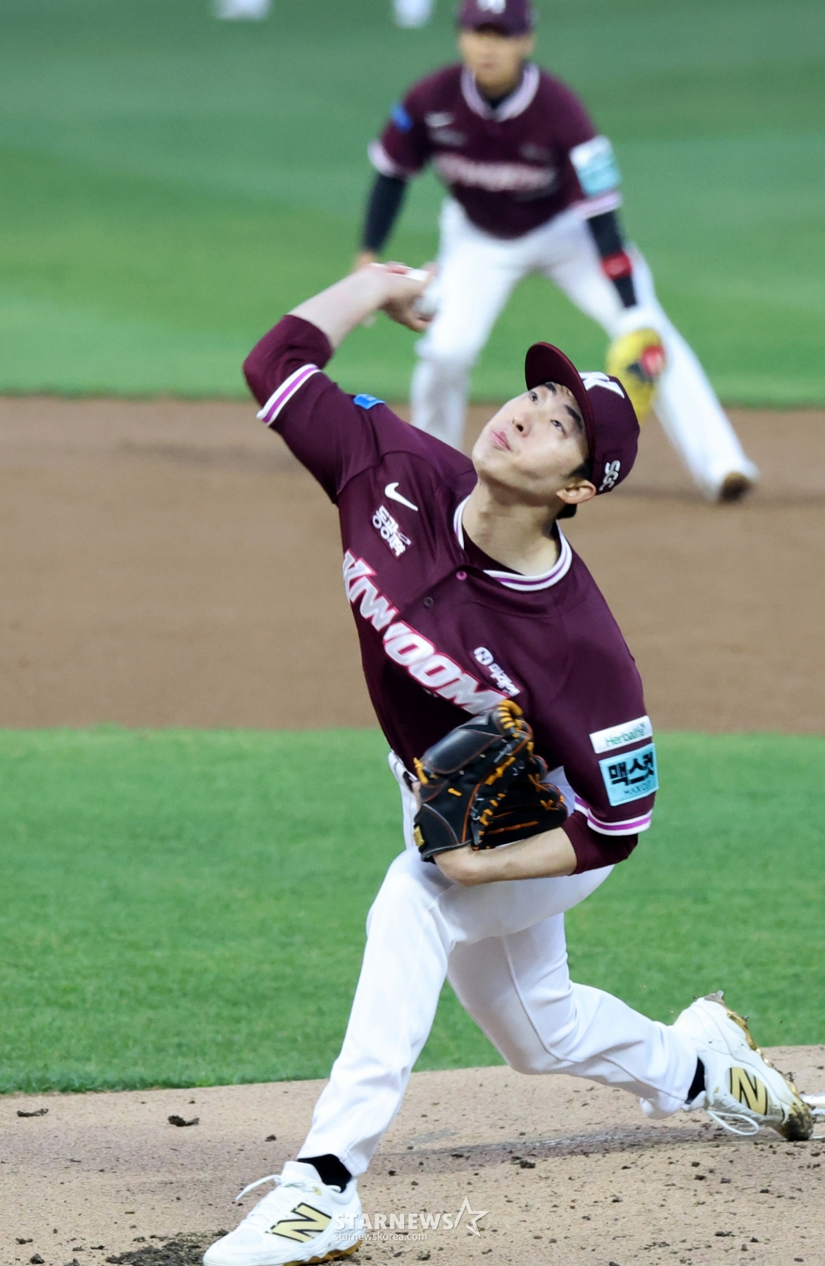 Kiwoom right-hander Bae Dong-hyun is starting in the 2026 professional baseball game between SSG Landers and Kiwoom Heroes at SSG Landers Field in Incheon on the 1st. For Landers, Takeda was the starting pitcher. 2026.04.01.