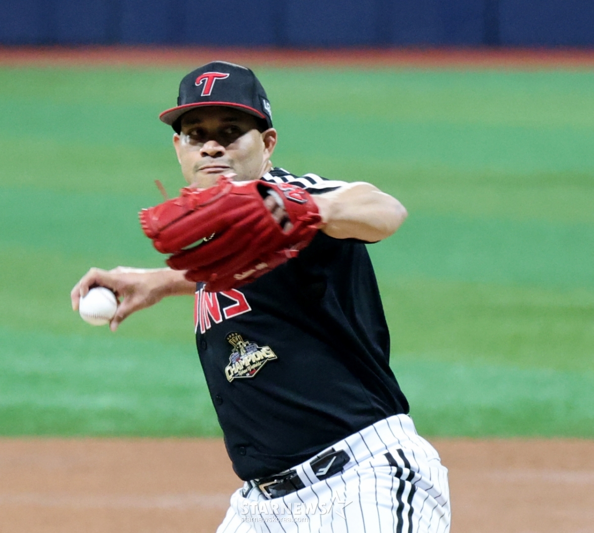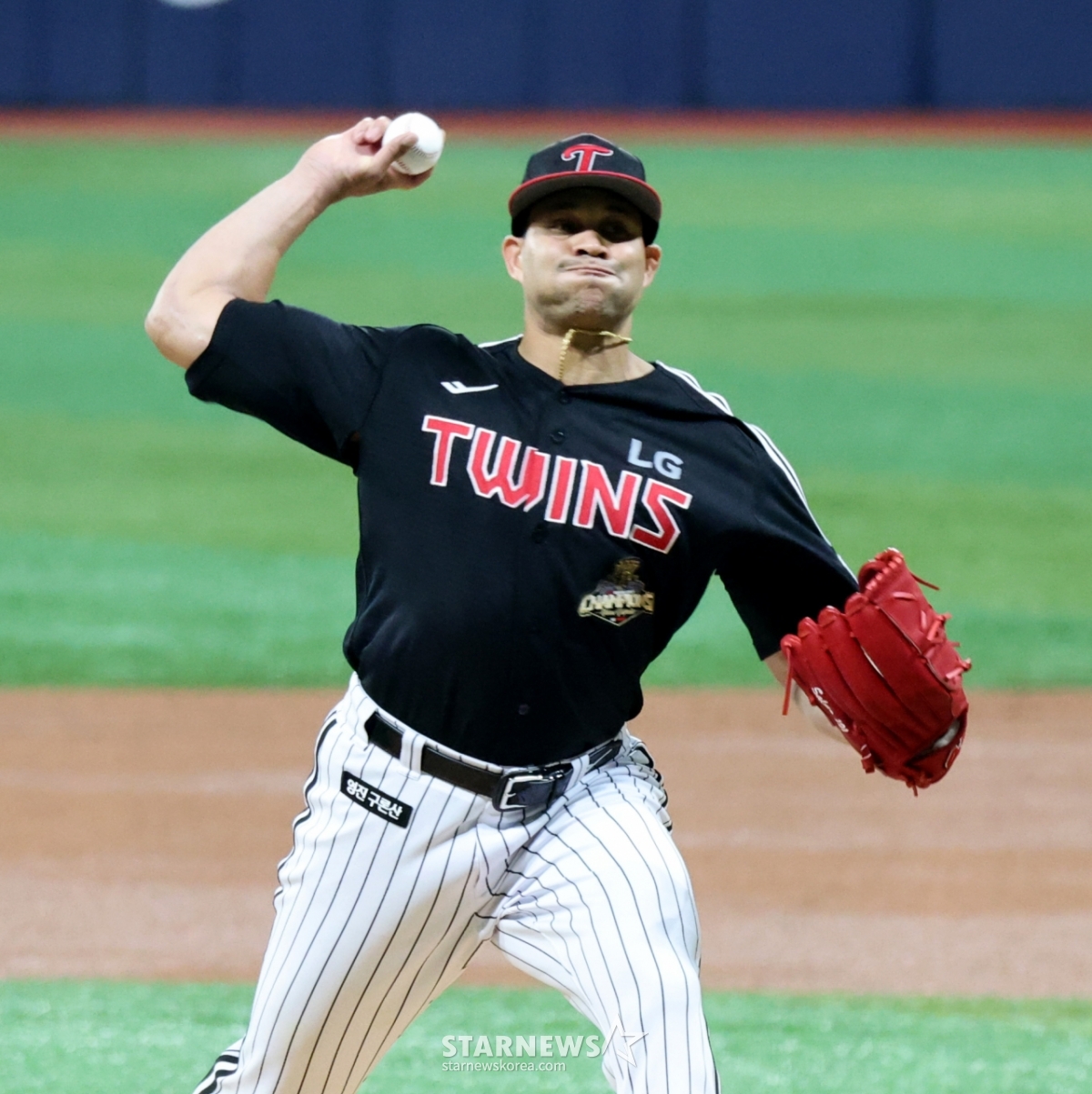 LG right-hander Chirinos is pitching hard as a starter in the 2026 KBO League Kiwoom Heroes and LG Twins match at Yeochuk Sky Dome on the 4th. 202604.03.