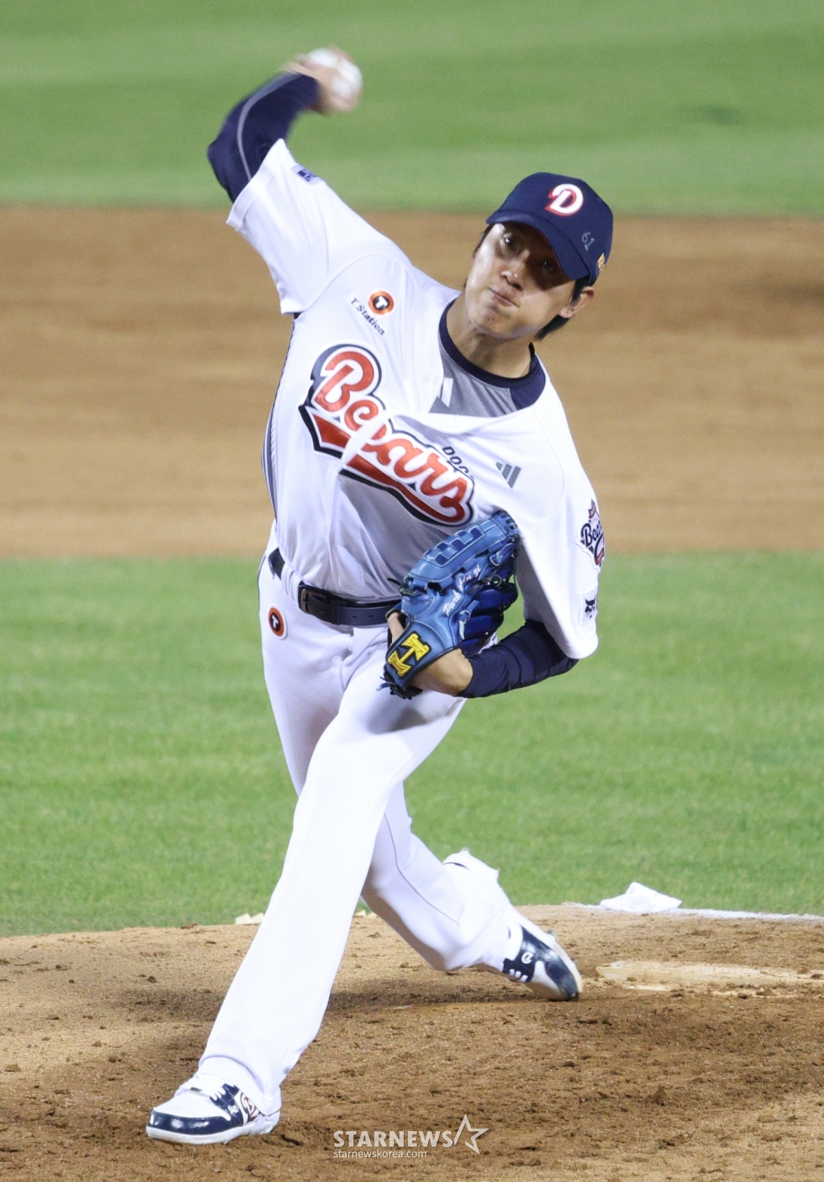 Park Shin-ji of Doosan is pitching hard.