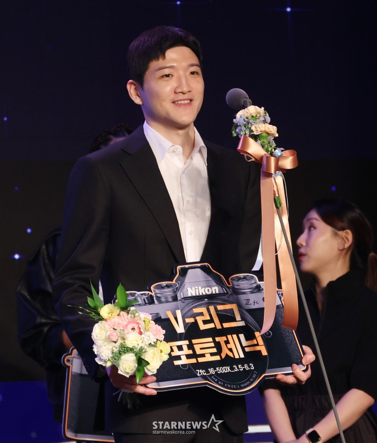 Jung Ji-seok poses after winning the V-League Photogenic Award.