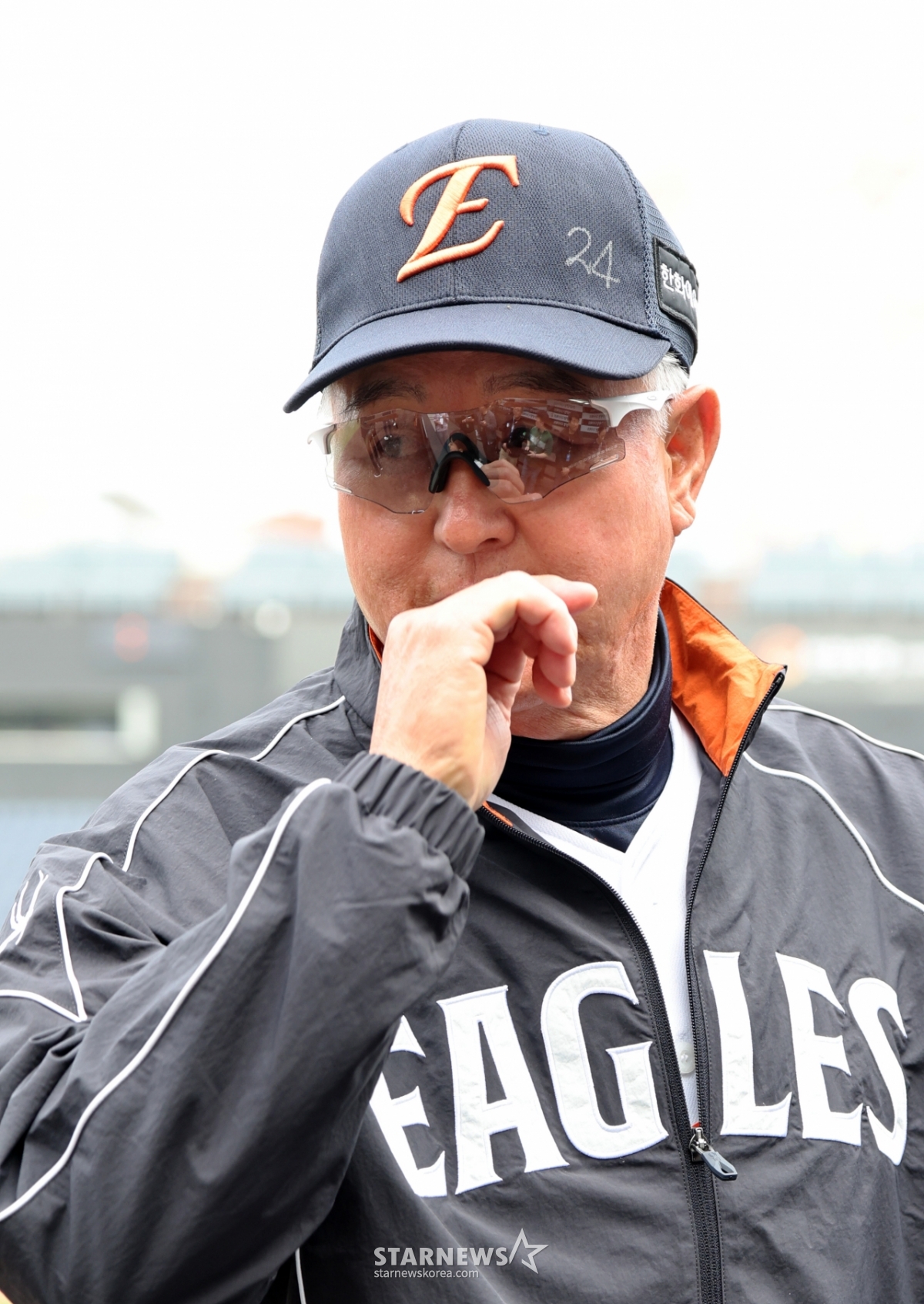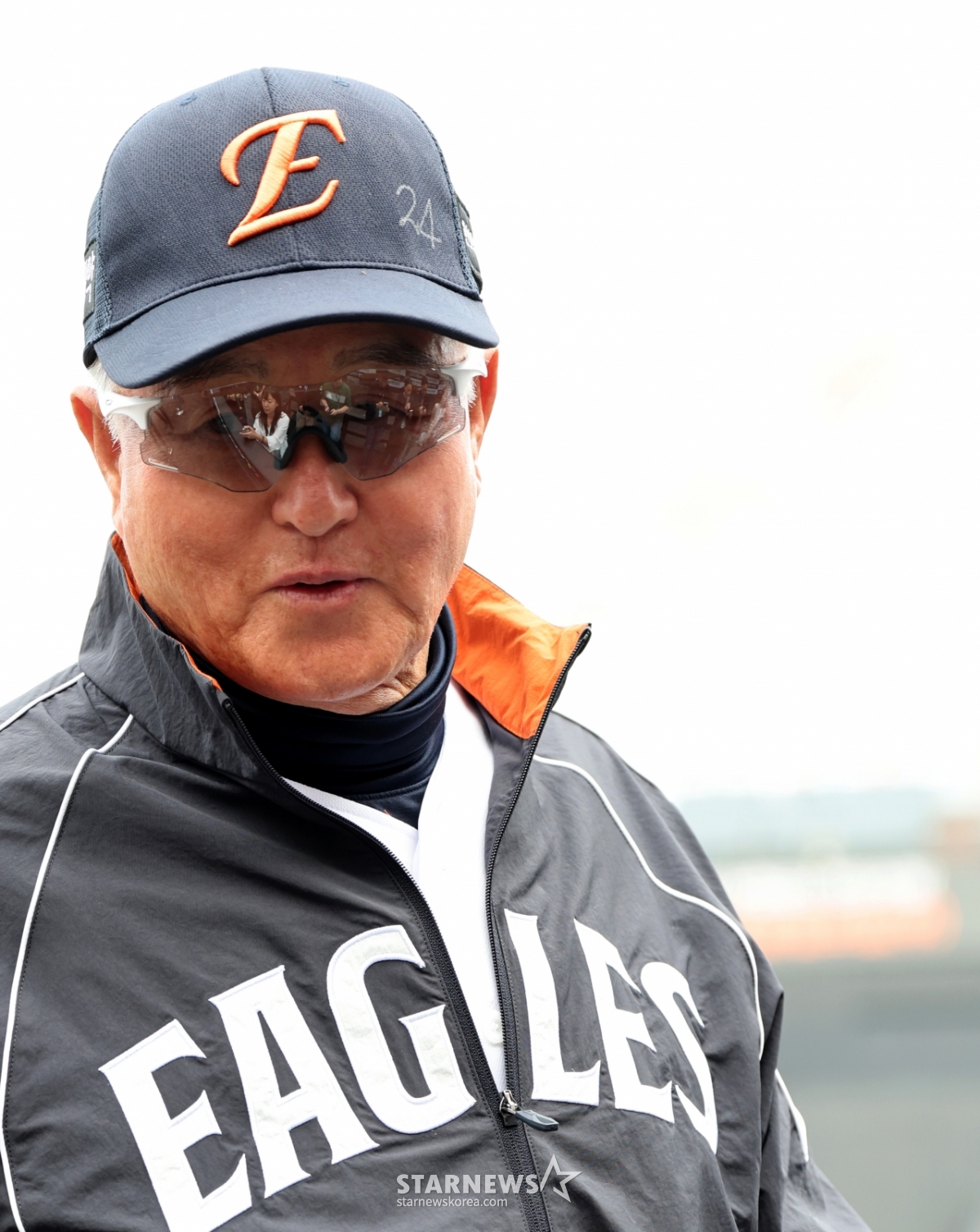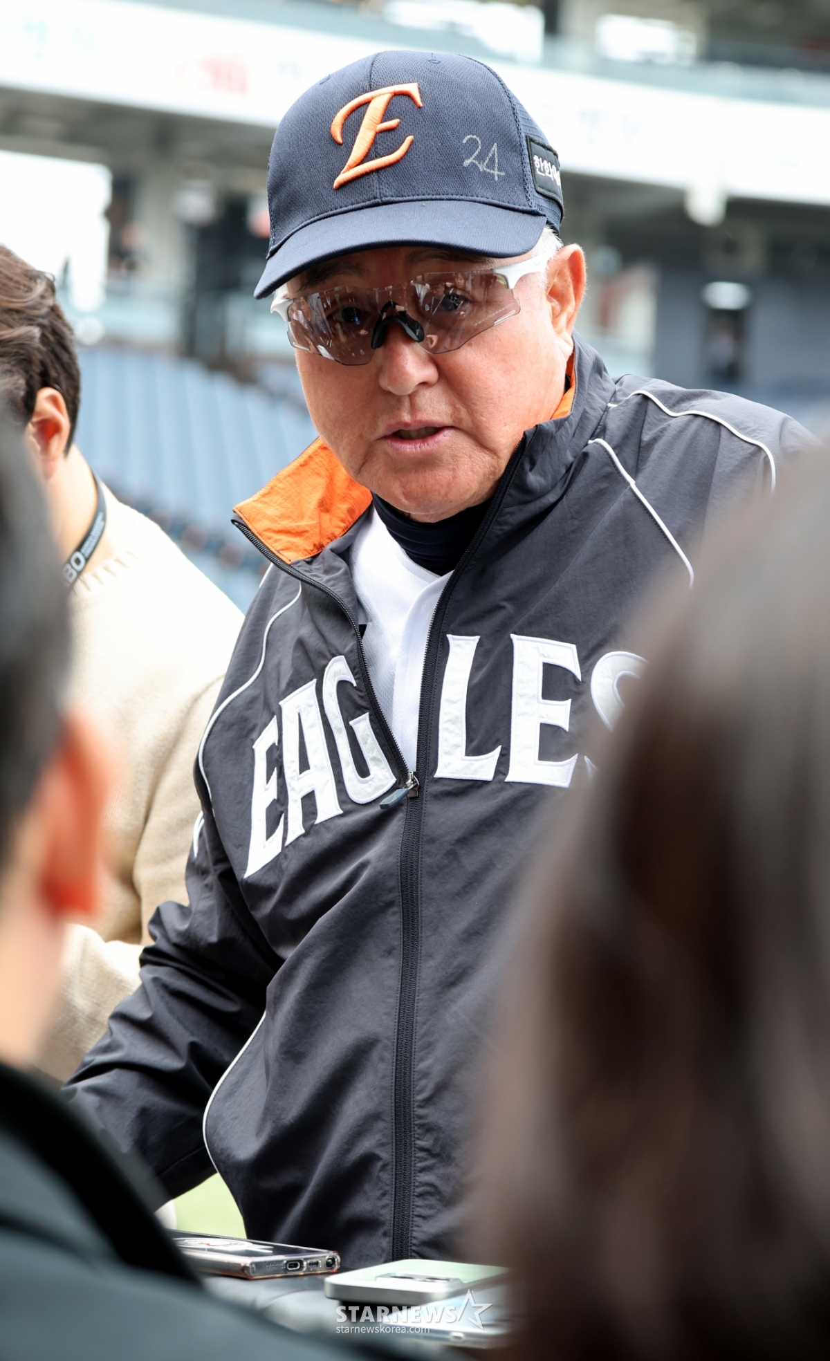 Hanwha manager Kim Kyung-moon talks with reporters ahead of the 2026 KBO League Hanwha Eagles and Samsung Lions game at Hanwha Life Ball Park in Daejeon on the 14th.