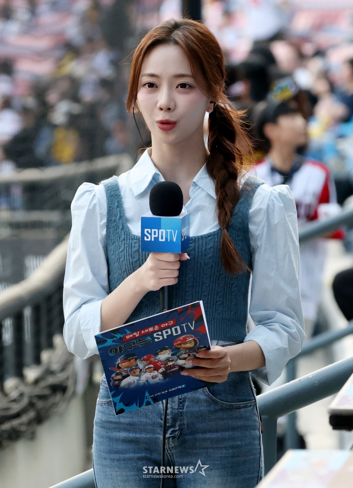 Announcer Jang Seo-hyun is preparing for the broadcast.