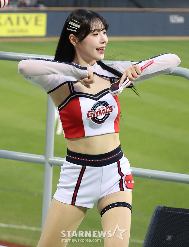 Lotte cheerleader Lee Ha-eun is cheering refreshingly.
